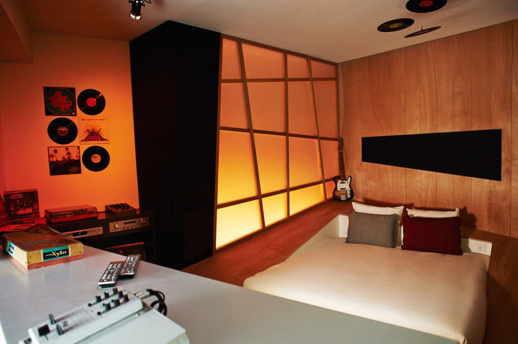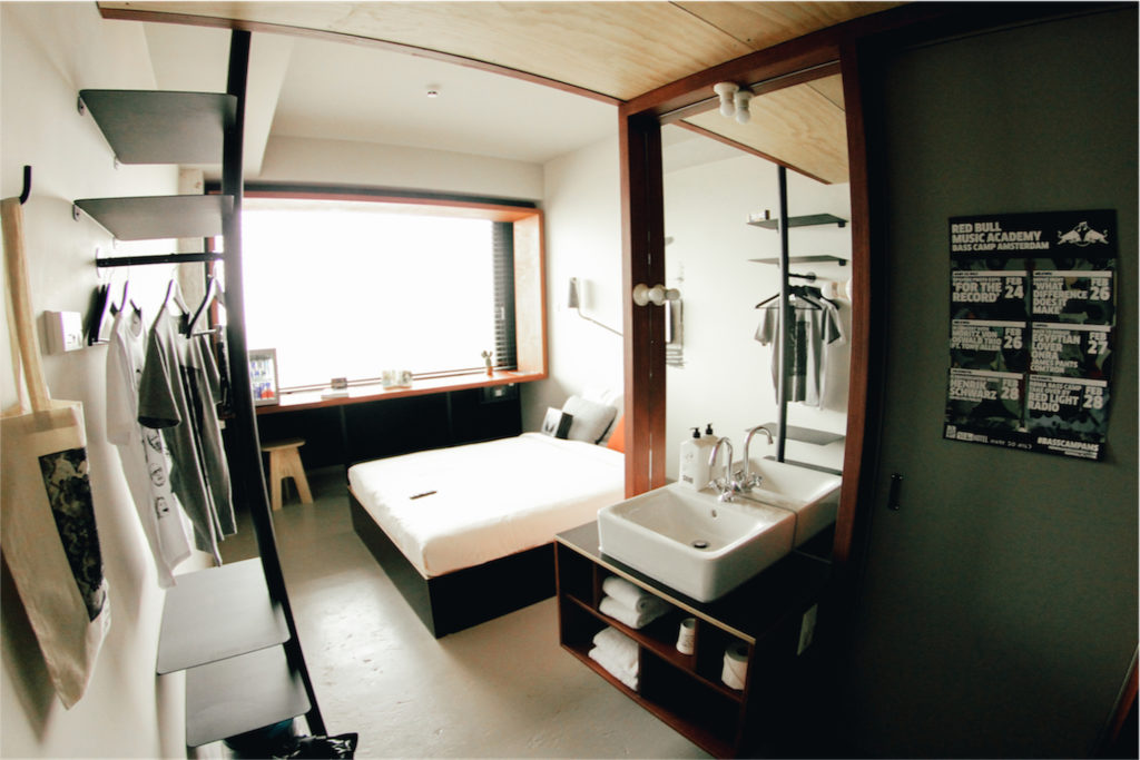 The private rooms at Via Amsterdam are bright, minimalist with premium mattresses ensuring a good night’s sleep, while the bedside lamps are made from old Bakelite phones in keeping with the hostel’s retro decor.