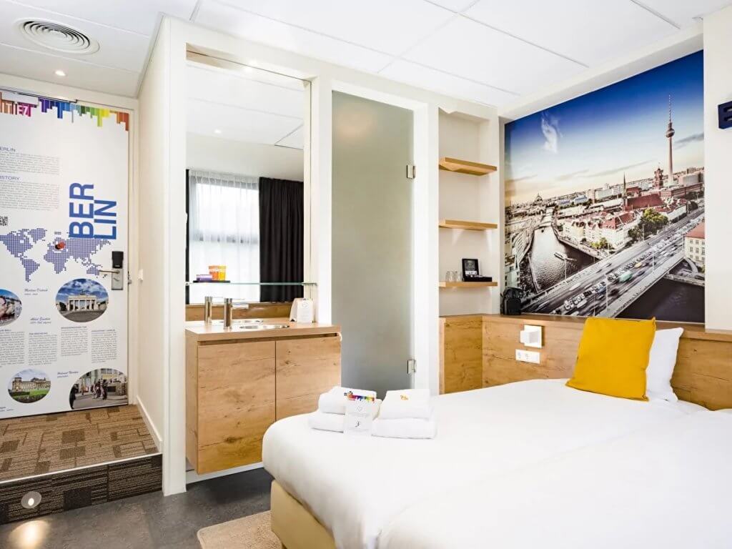 The novel feature of the CityHub in Amsterdam, are their innovative and minimalistic design of ‘Hubs’ or small cabins for stay. The Hubs have free Wi-Fi and air-conditioning, pre-made beds, changeable ambient lighting, rain showers, separate male and female bathrooms and complimentary towels. For €10 you can have breakfast in the ‘Breakfast Club’ across the street. CityHub Amsterdam has a number of hosts who will be happy to guide you during your stay.