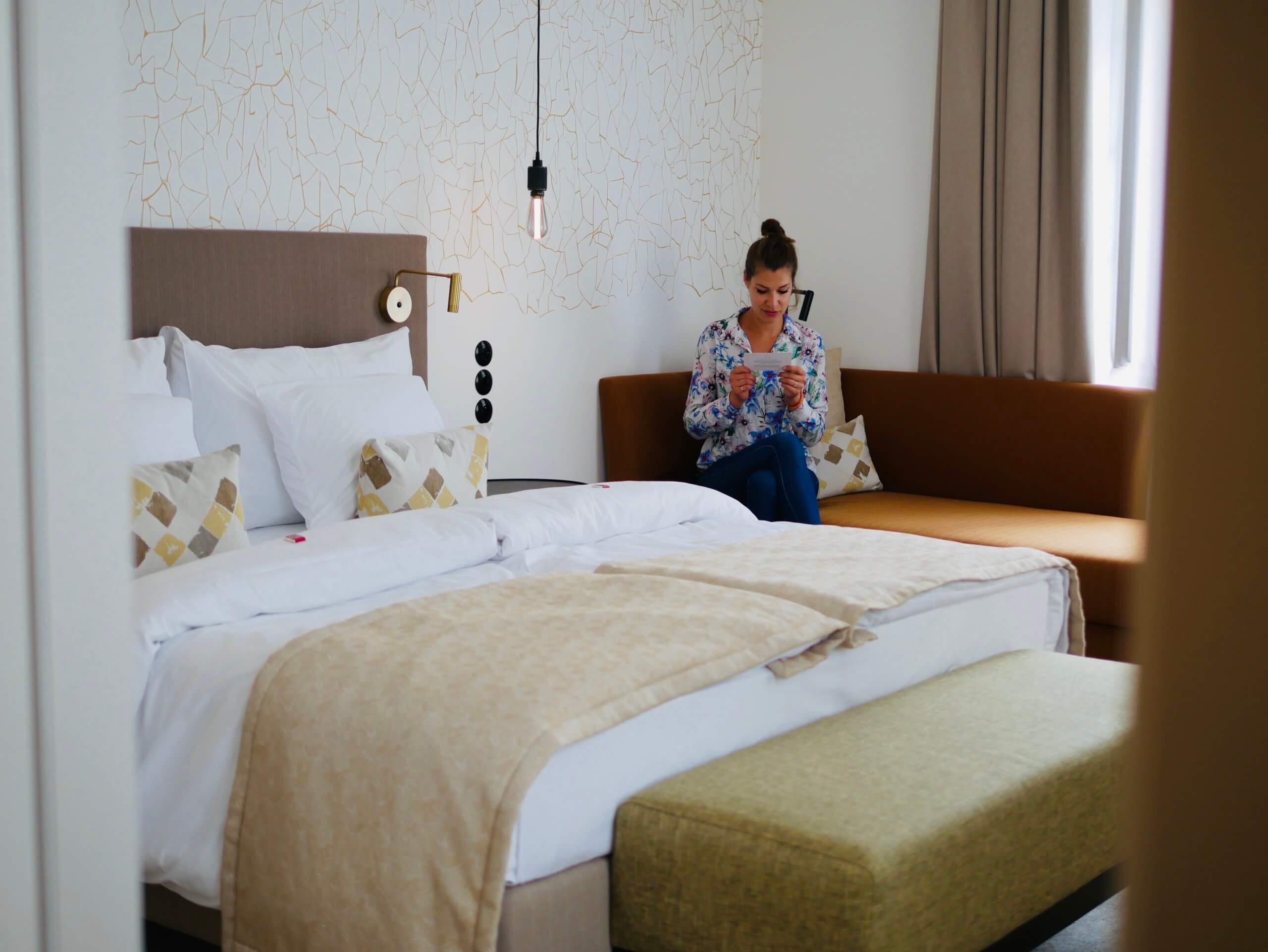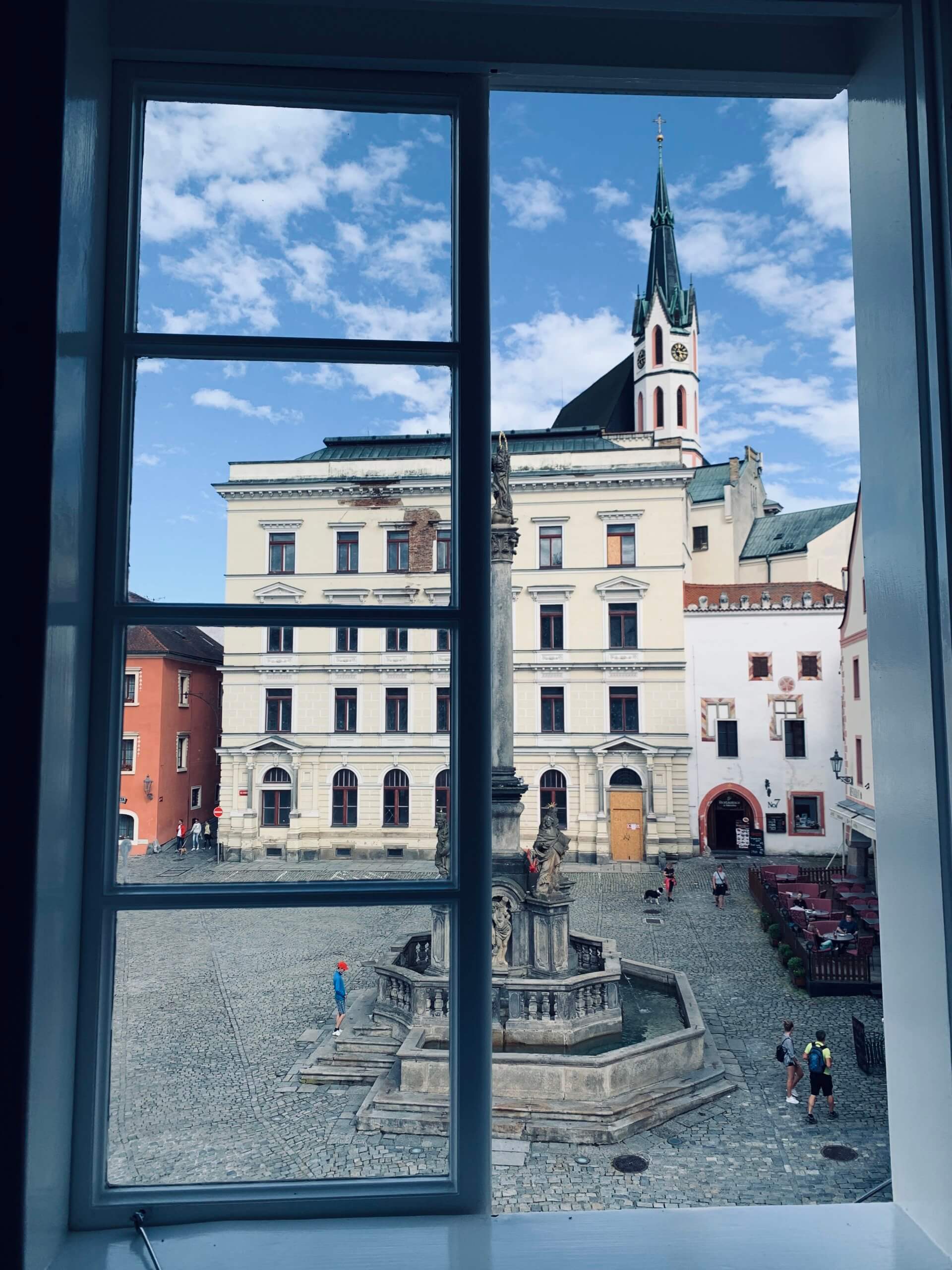 If you love hotels with a sense of time and place, tons of character, then you will love the Hotel Oldinn. The hotel has been through several reincarnations, from once brewing beer to producing gingerbread to even once functioning as a district court, this place has lots of stories to tell . ( You can read more about the history on the hotel website ) Facing the historic Svornosti Square in clear view of the statue of the Holy Virgin with her eight saints, patrons , protectors of the town, the location of this hotel is perfect. The rooms, recently refurbished are spacious with nice sized queen bed, lots of storage space and ensuite bathrooms have a nice powered shower, complimentary toiletries. Bag a room facing the square-I spent a lot of time people watching from our room. The buffet breakfast, served in the adjoining cafe is fabulous with lots of hot and cold food options included, fresh fruit, cereals and fruit juices. There’s even a few cool options for those who love asian food like noodles and fried rice which was fab. Staff are friendly and very helpful here. The other added bonus is that you can use the spa and swimming pool facilities for free at the sister hotel, Hotel Ruze, up the road- just have to make the booking in advance via the reception staff.