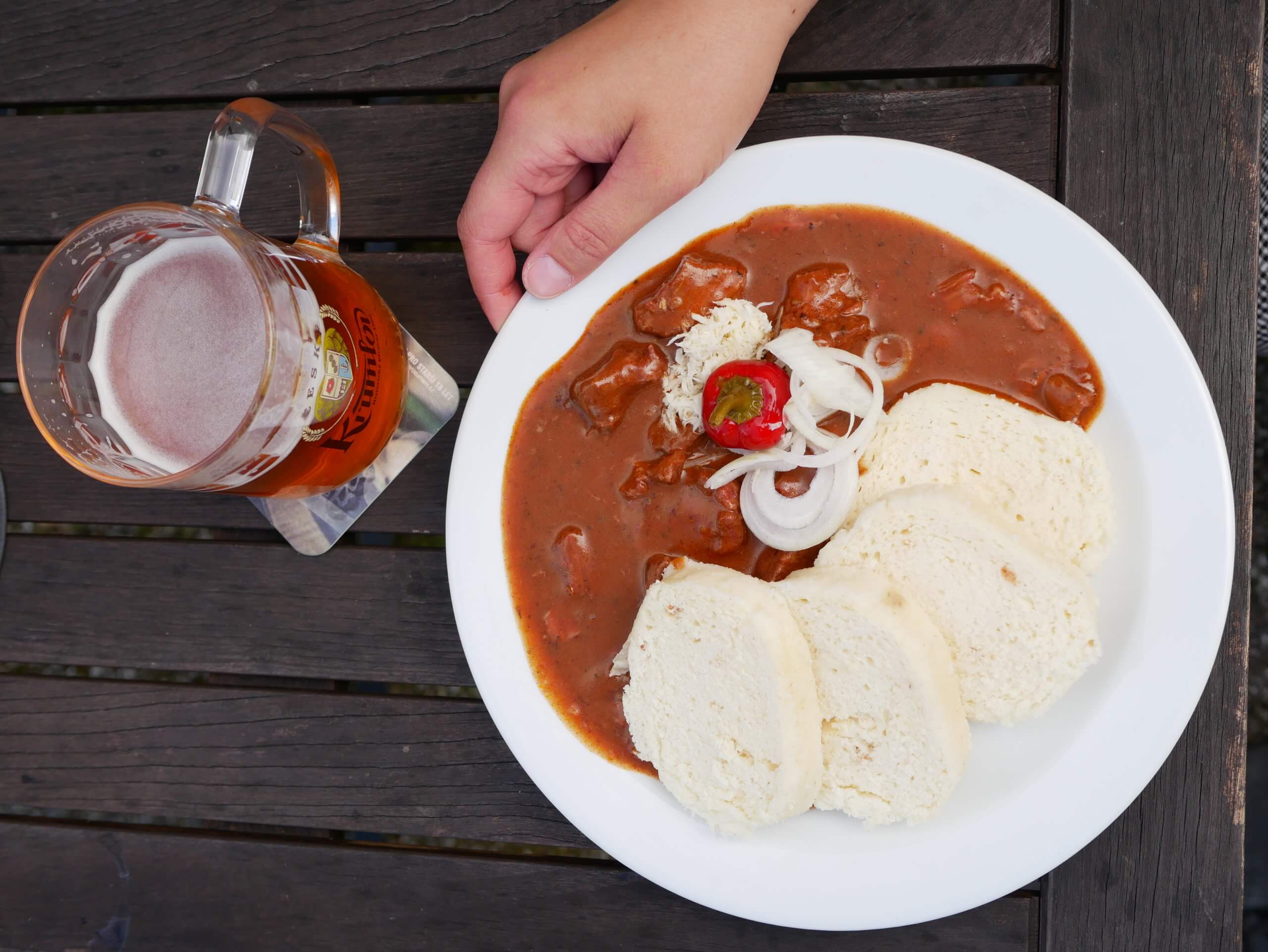 With a focus on Czech and especially South Bohemian cuisine situated in the picturesque surroundings of a renovated château park along the banks of Polečnice river, Depo Pub is definitely one of the more authentic local offerings in town. I really enjoyed the food here, starting with the South Bohemian Potato soup (60 CZK) and then the goulash of beef neck with horseradish, chili pepper, onion and bread dumplings (135 CZK) – both dishes were outstanding. Completed by nice service and an excellent range of local beers on draft including the excellent local Český Krumlov beer, this is definitely a place I look forward to returning when I’m back in Český Krumlov.