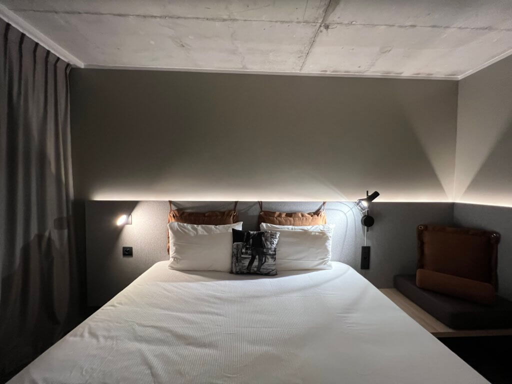 Moxy Bordeaux has a fab location in the heart of Bassins à Flot , steps from the Cité du Vin and within walking distance from the Bassins des Lumières. The Moxy guestrooms are the perfect combination of style and comfort, where guests can relax and connect. The hotel’s large lobby is the place to socialise, with an onsite bar serving local beers and also stonebaked pizzas. There are lot of comfy sofas to lounge, tables to work from and and there’s a 24/7 pantry that has snacks and drinks which is very handy.