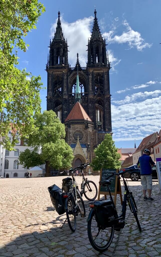 Silke takes us through a shortcut -a very steep staircase that leads from the cobbled square to Albrechtsburg Castle. There is a wee cable car that can take you up but the walk albeit quite taxing, rewards us with some lovely views of the fantastic medieval skyline of the Aldstadt and the Elbe river in the distance. We then go for a brief wonder around the exterior of the majestic Meissen Cathedral– Silke recommends we have lunch at the historic Domkeller restaurant and also that we do not miss the organ concert at 12pm-cool tips like that which always make having a guide so useful.