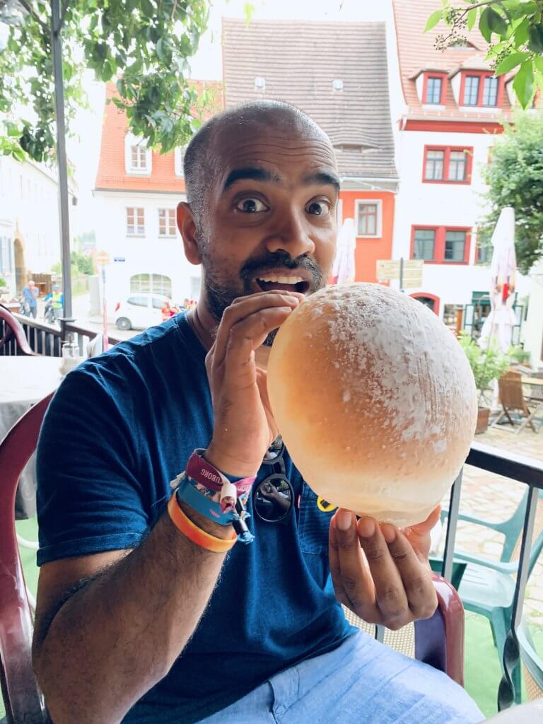Don’t leave Meissen without trying the city’s famous delicacy, Fummel! It is probably the most unusual pastry in the world: a puffed up balloon of wafer thin dough with a generous filling of air and dusted with sugar.