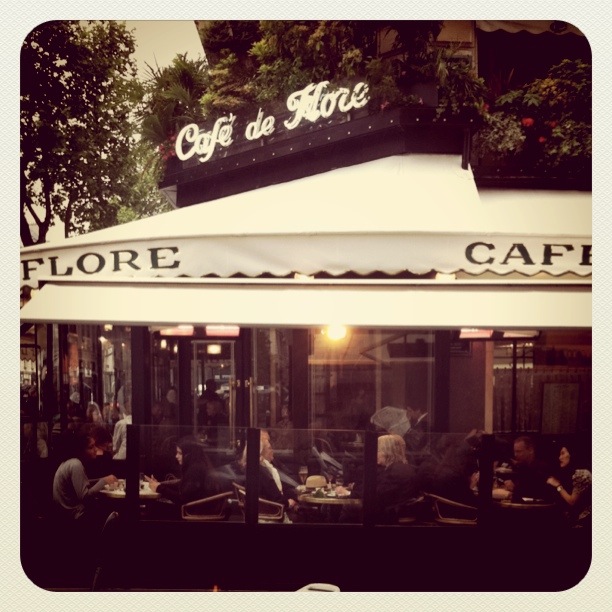 Cafe Flore bursting at seams.Favourite hangout for intellectuals Sartre and Simone De Beauvoir.