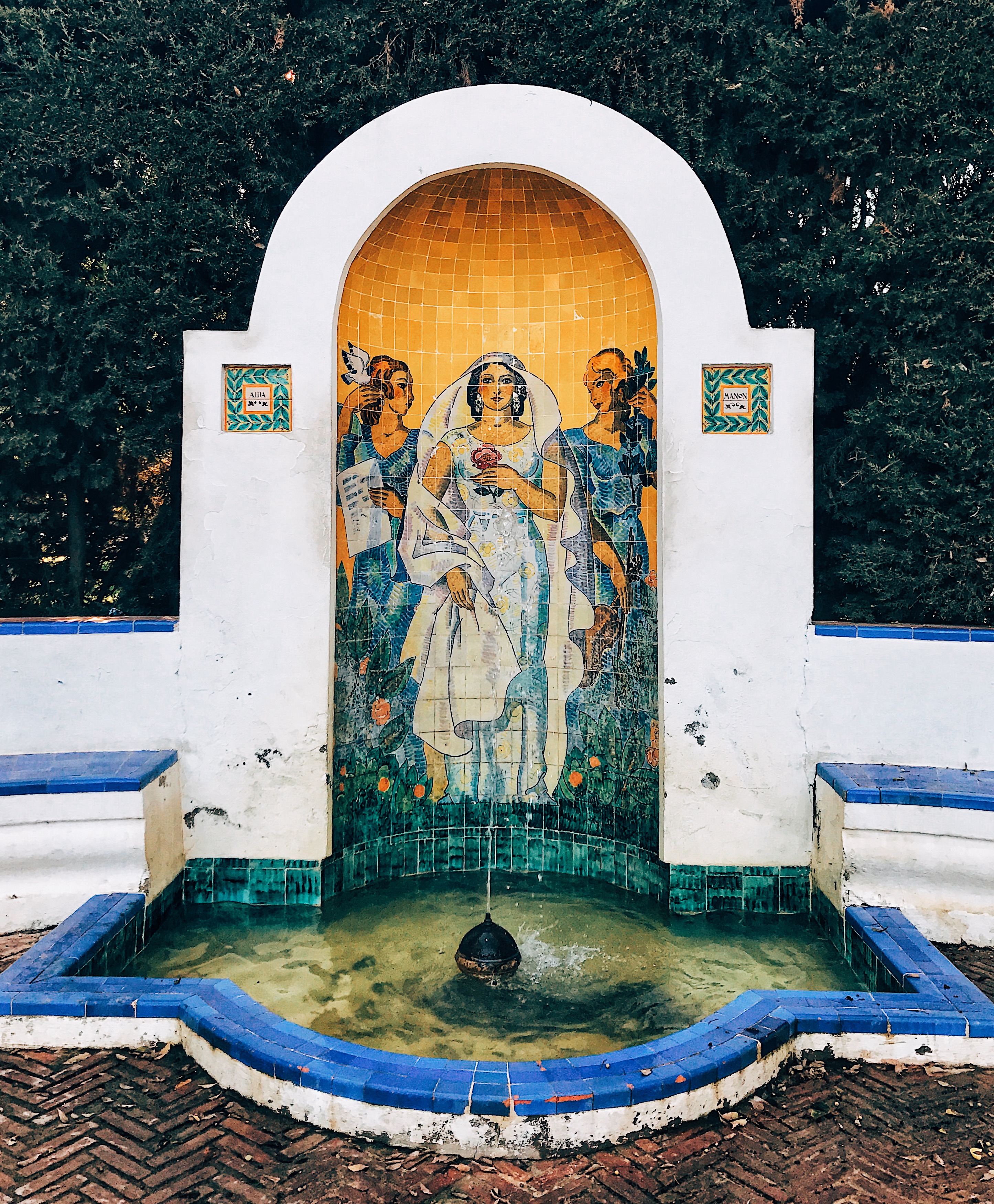 The moorish rule from the 8th till 15th century left a lasting impact on the Spanish language, culture and also their architecture. During their prosperous reign they created a number of outstandingly beautiful buildings which you can see to this day like the Alhambra Palace in Granada to the bewitching Mesquita in Granada. The Mudejar style, which was a kind of hybrid mix of Moorish and European styles, is the style that defines these glorious buildings. One of the best examples of this style can be seen in Seville at the Royal Alcazar. The palace will be familiar to Game of Thrones fans (I’m not one of them. Yet to watch this series!) The Royal Alcazar is the oldest working Royal Palace in use. It is a pretty breathtaking place with a lot of detail to take in : from ceilings covered in rich intricate Mudejar decoration to the star patterned azulejos tiles and then you have the huge Italianate-Islamic gardens with their towering palm trees. I recommend a few hours for exploring this place.