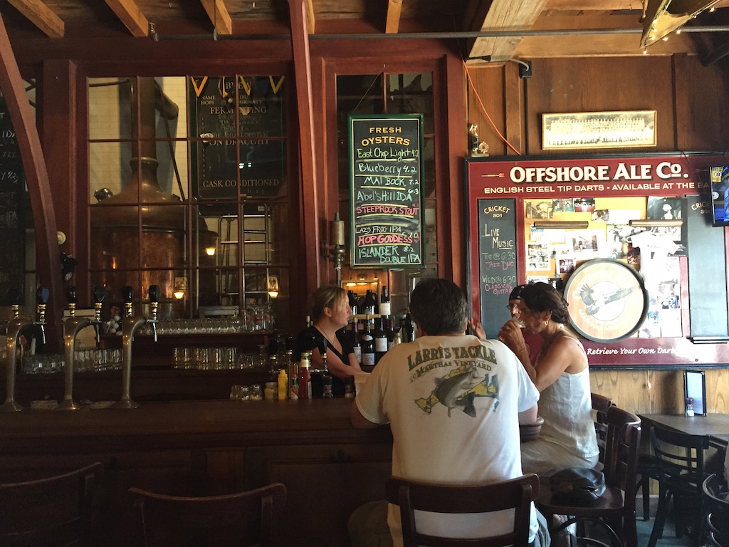 This is a charming little pub in Oak Bluffs. The floor is strewn decoratively with cracked open peanut shells lending a unique appeal. The Offshore Blueberry ale is light (around $5 for a pint) and very refreshing for a cheeky midday tipple. The restaurant and pub are quite child-friendly and the staff very amiable.