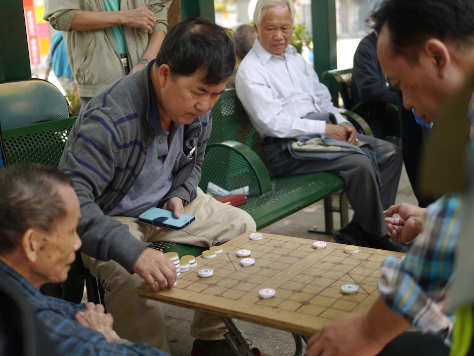 Tai Cheong bakery: Serving HK’s best egg custard tarts since 1954.Sidney, my fantastic guide standing in silence and awe at the Man Mo Temple. Air was heavy with burning incense and glowing with written prayers on red. Definitely has to be on your list of must see things in Hong Kong.People on the street playing chinese checkers.