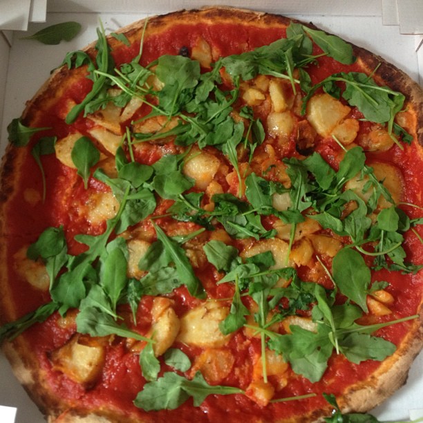 I’m still hungry and I walking out of La Stanze, I smell pizza. Pizza Casa (Via delle Belle Arti, 6,) just up the road a few hundred yards is a simple pizzeria that does great pizzas, freshly baked in their huge oven. It’s popular with students and locals. Pizzas are very competitively priced with a margharita pizza costing just €2.50. You can create your own, which I did. My pizza ( I called it ‘Kashizza) consisted of tomato, garlic, potatoes and topping of rocket leaves. Delicious. Pizza and potatoes is a Michelin star winning combo.
