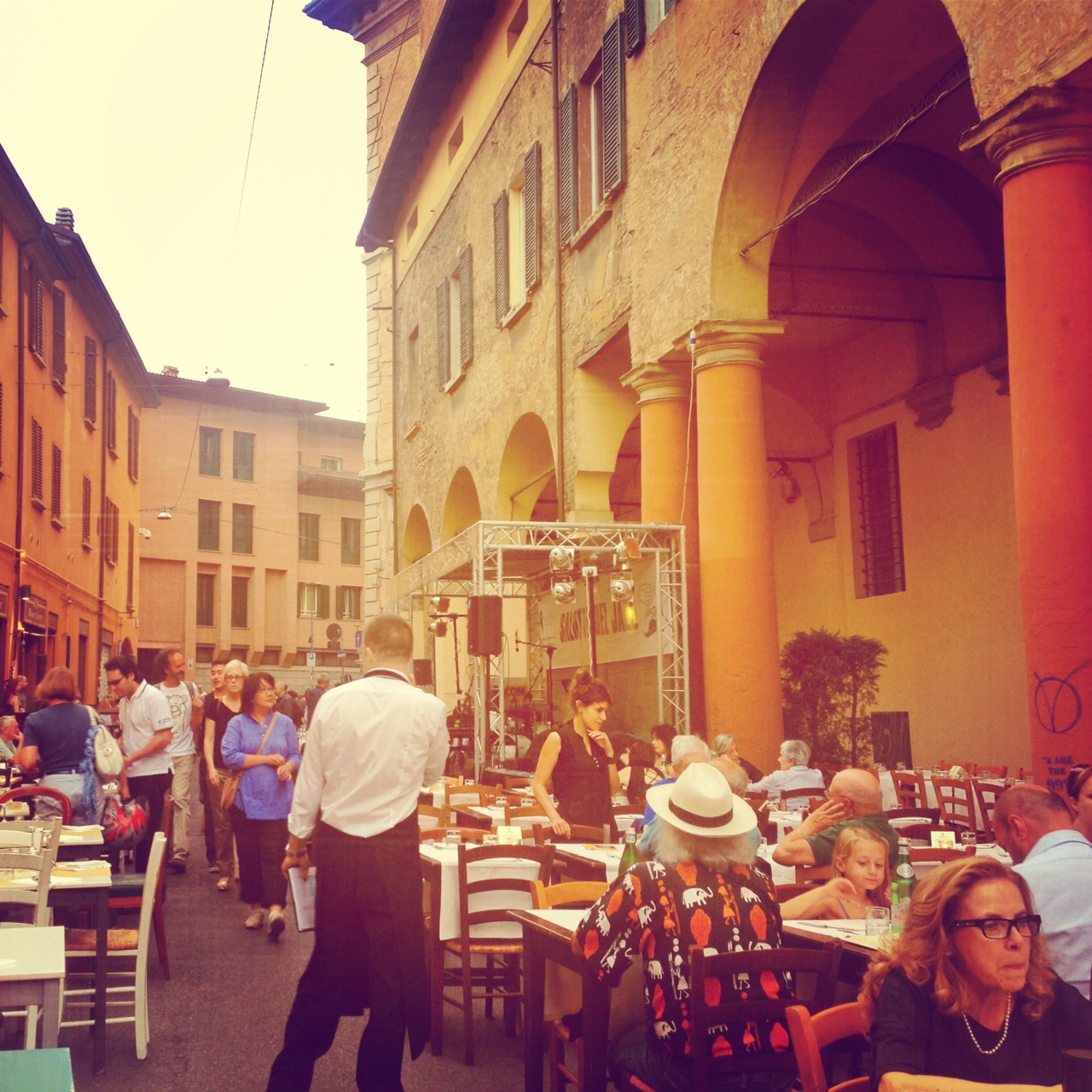 My next stop is Via Mascerella where I am about to discover another amazing secret of the city- a great summer event in Bologna called Salotto del jazz .If you’re visiting from June to August you can dine and drink while listening to live jazz sitting on the street of Via Mascarella. The upper area is specially closed to the traffic for this period of time. Even if you don’t fancy jazz, there something so cool about eating or having a drink on a street, surrounded by beautiful buildings in a communal setting on a beautiful summers evening, sipping on good wine like Pignoletto maybe….One of life’s great experiences.