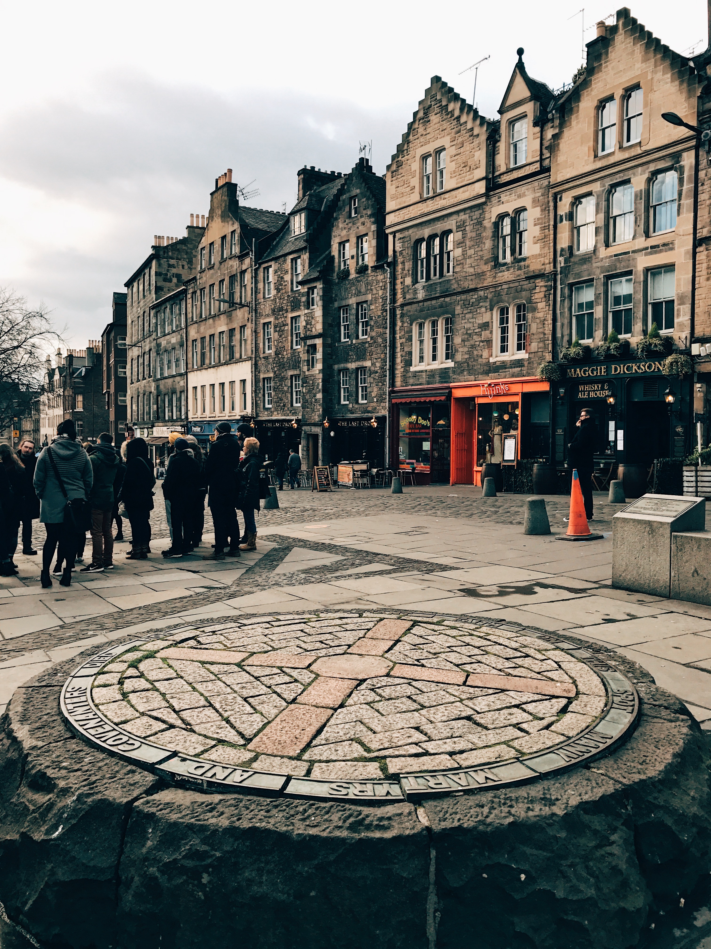 The reason this pub is called the World’s End Pub is that this building used to mark the boundary of Edinburgh in the ancient period. You’ll see some brass bars in the ground in front of the pub which mark where the wall used to be.