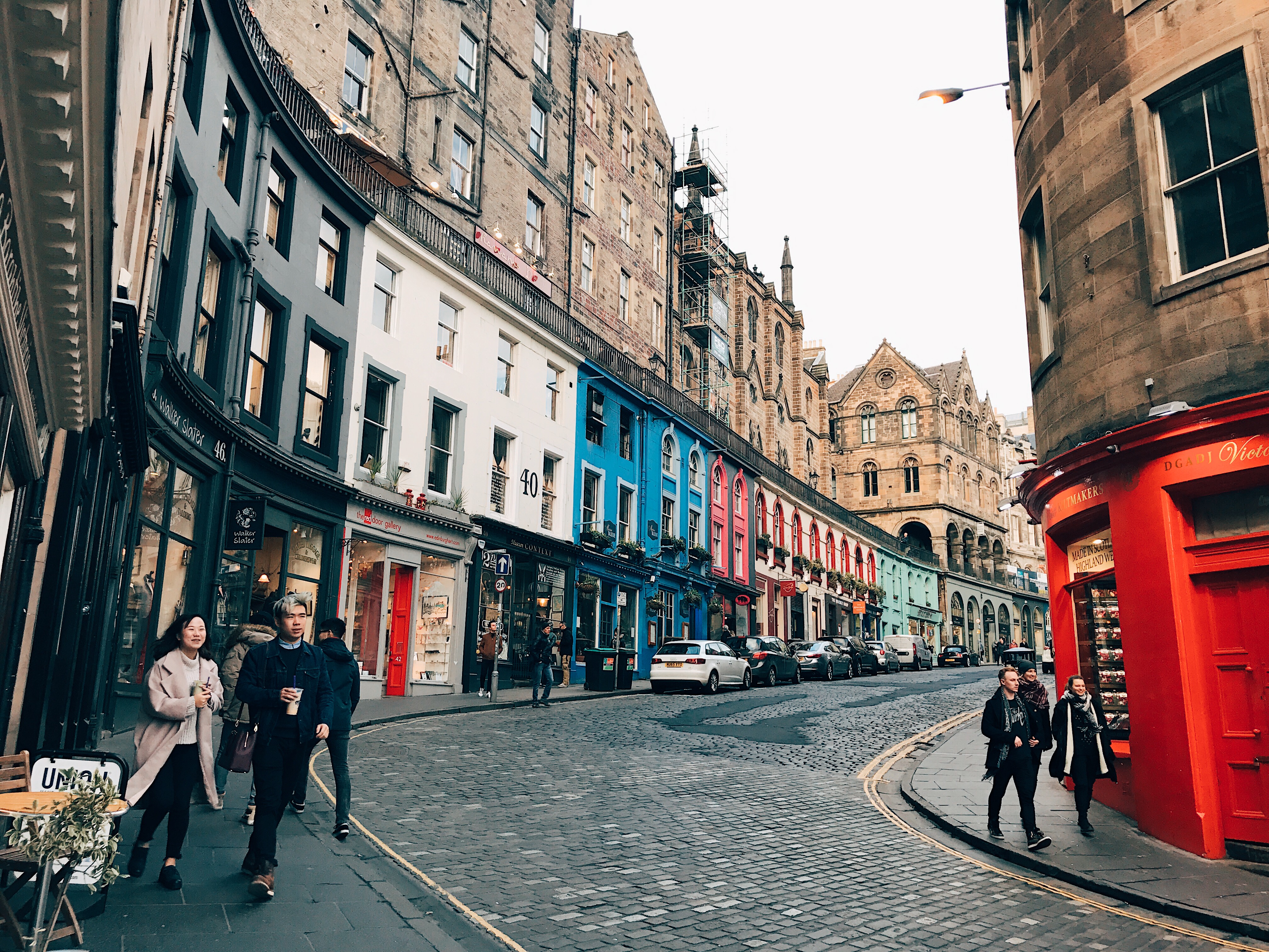 Steeply winding up from Grassmarket in a perfect spiral, you will find yourself on the prettiest street in Edinburgh and probably Scotland: Victoria Street! It has a bunch of lovely shops and restaurants with different coloured facades. In Victoria Street you’ll find one of my favourite pubs in Edinburgh called the Bow Bar. Proper pub which has a lovely range of ales and beers on tap. Highly recommend their chocolate and lime stout that is made with real dark chocolate.
