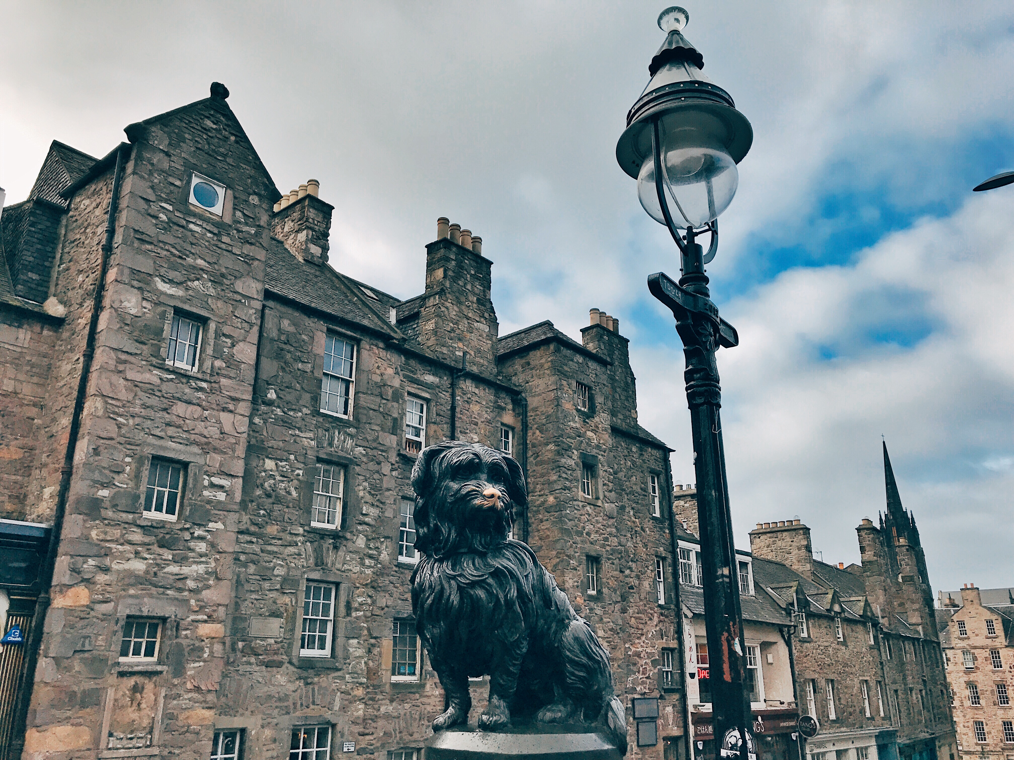 Spotted the statue of a Skye Terrier: that’s the famous Greyfriars Bobby. You probably know the story of this dog? His grave is right in front of the entrance of the Greyfriars Bobby Kirk. The church and graveyard is beautiful with great views of the Castle. Some people say this is a haunted graveyard and ghost tours come here at night.