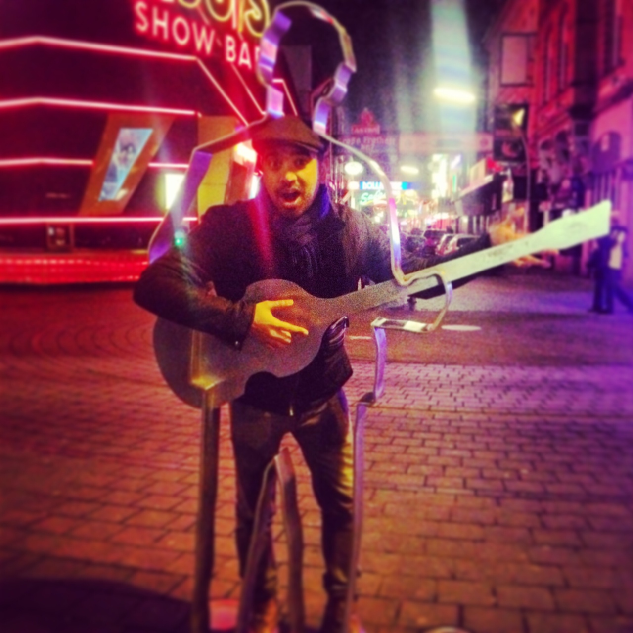 The last stop of my Hamburg musical pilgrimage fittingly ends with a silly picture of me at the Beatles Platz ( Is that Paul or John, John was lefthanded right? ) a vinyl record shaped memorial at the crossroads of Reeperbahn and Grose Freiheit, dedicated to the memory of the Fabulous 5′s ( Stuart Sutcliffe, who left the band after Hamburg) time in the city from 1960-1962.