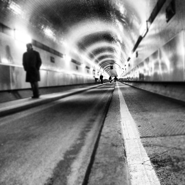 Built in 1911, 426 metres long , 26 metres below sea level and just 6 metres in diameter, the Elbe Tunnel is 24 hour pedestrian tunnel that links the dockyards on the southside of the Elbe with central Hamburg. Glazed with terracotta figures, the tunnel is a bit of an icon in modern cinema featuring in movies like ‘The Odessa File’ & also Wim Wenders ‘An American Friend.’