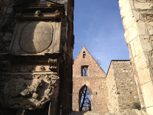 Following the Red Thread, just before crossing over Osterstrasse, I come across the beautiful ruins of one of Hannover’s oldest churches, the Aegidienkirche. The Allied air raid of 1943 damaged the church badly. All that is visible now are the outer walls and parts of the Baroque Tower. The church has reinvented itself as a memorial to the victims of war and violence. I wait till 12.05 to hear the church’s ‘peace bell’ ring. This bell was presented to the church and city by it’s twin city, Hiroshima. Visitors can hear the bells toll at the following times: 9.05, 12.05, 15.05 and at 18.05 in the evening. Peace bell also is rung at an annual memorial service on 6th August in rememberance of the dropping of the atomic bomb on Hiroshima.