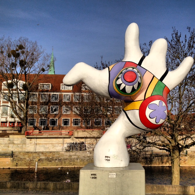 Hey Nana! This is one of the three buxom, colourful Nanas on Leibnizufer that Niki de Saint Phalle sculpted for Hannover in 1974. Initially met with intense public dislike , the ‘buxom girls’ are now proud mascots of the city.