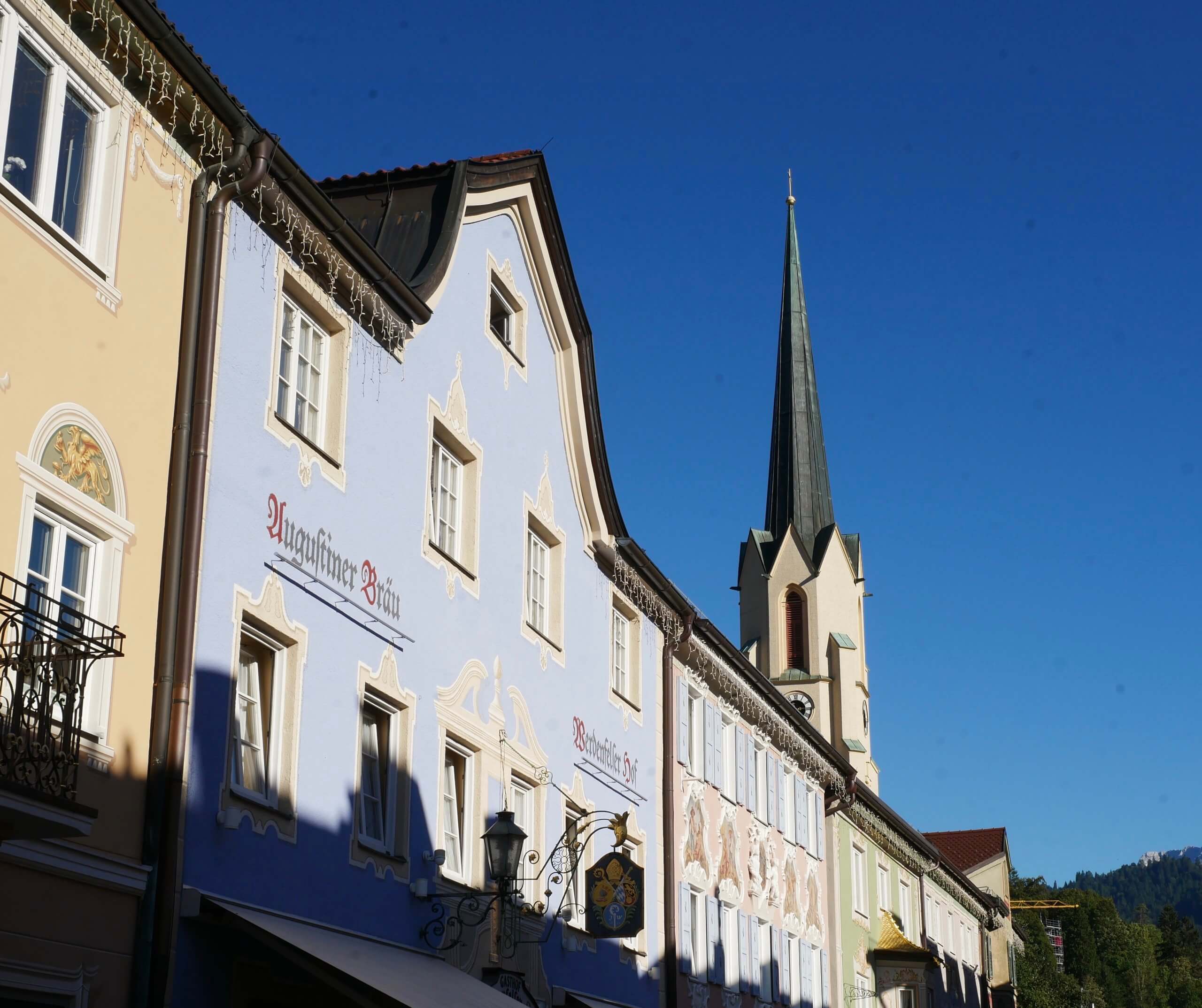 Partenkirchen, especially the main thoroughfare, Ludwigstrasse is a photographer’s delight. Everywhere you turn, quaint chalet style houses, the epitome of Bavarian architecture, greet your eyes. Gabled roofs with wide eaves, multicoloured houses with intricate murals, weatherboarded exteriors delightfully painted, ornate carvings and mouldings, window boxes bursting with cheerful flowers – Ludwigstrasse is pretty much picture-perfect.