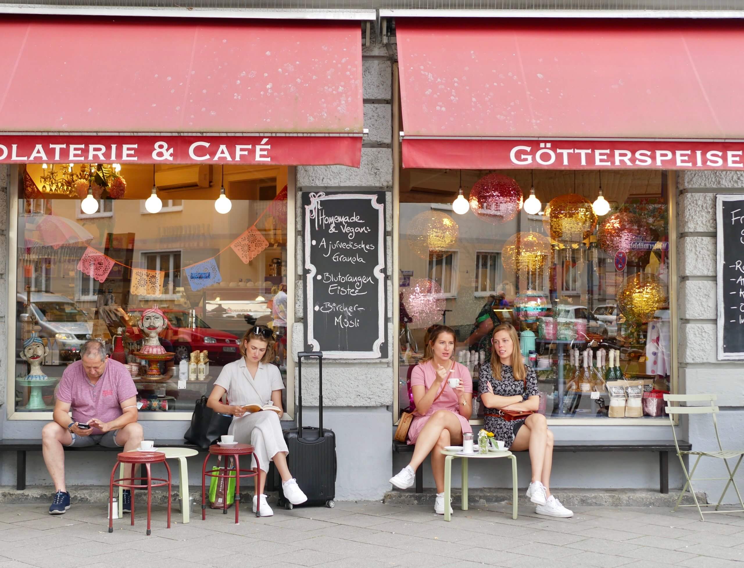 We finish our tour of the area with a visit to the Gotterspeise Chocolaterie and Cafe (Jahnstraße 30, 80469 Munich), a must visit for chocolate and food lovers .The shop is a treasure trove of carefully selected chocolate, wines, spirits and food from all parts of the world. I wanted to eat everything here and take it home. In the end we picked up a box of salted butter caramels from France and Spicy Pepper and Herb Taralli from Puglia. Then you have the adjacent cafe where you enjoy a hot chocolate or a coffee (roasted in-house) or homemade lemonade and take time to unwind on their wonderful outdoor terrace, watch the comings and going of people in Glockenbachviertel.