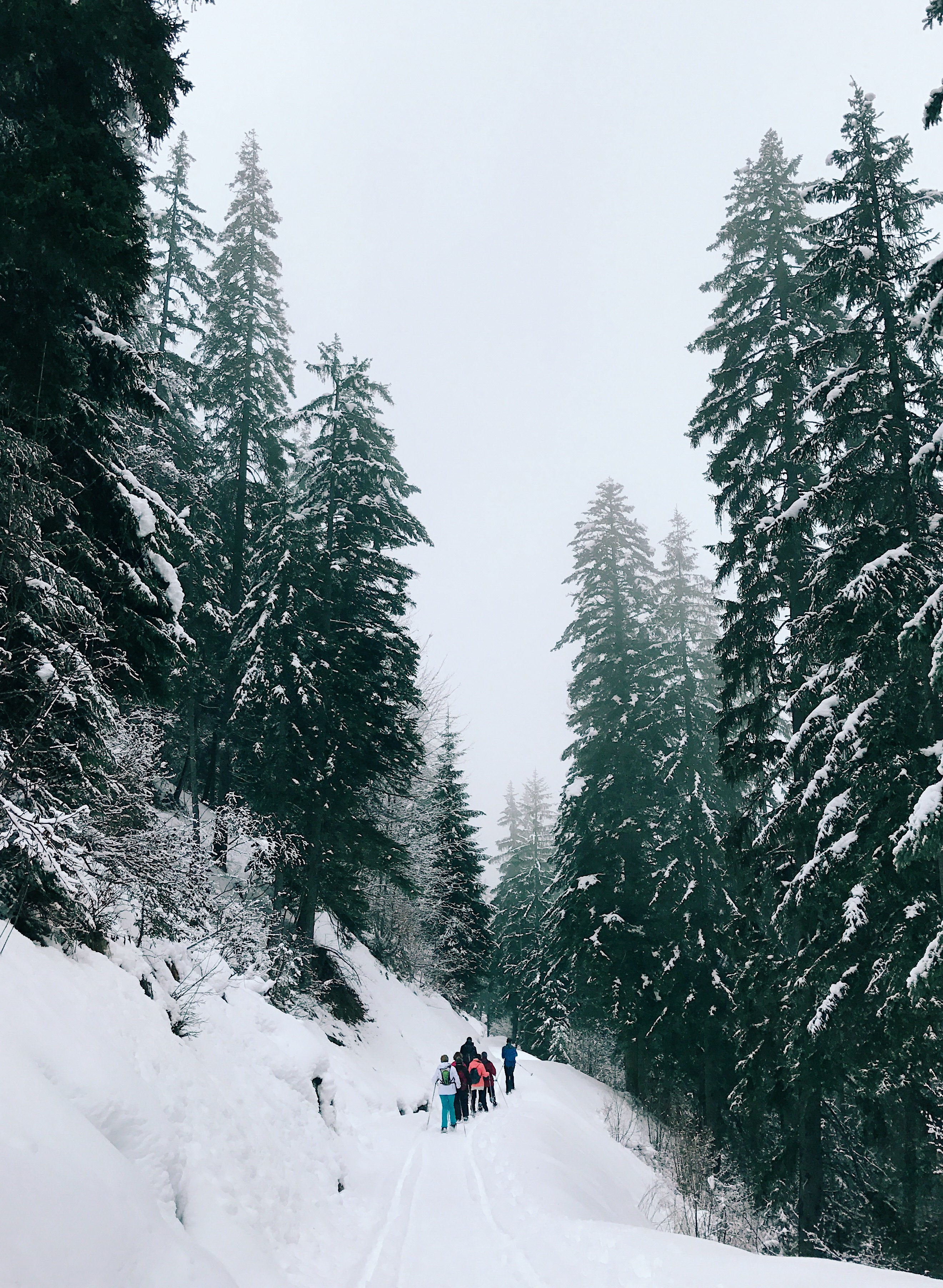 I honestly I had no clue about snowshoeing. Best, simplest advice my guide from the ESF school gave me: ‘ If you can walk, you can snowshoe.’ The learning curve is much less steeper than skiing or snowboarding. In the beginning it feels a little awkward. However after awhile I got the hang of it. It is hard work initially. In Les Menuires I went on a half day hike from St Martin de Belleville through the Belleville Valley. We start off on a marked trail but then soon find ourselves carving out a route uphill through virgin snow. There was a decent few inches of powder. I enjoy the peace of nature around me, the silence of the mountains with nothing but the wonderful crunch of snow under my feet. Going uphill was a proper workout. I was sweating buckets under the layers and grateful I had brought water with me. Also for novelty value, some of us in the group were scooping the fresh snow and eating it. I’m still alive, yes. I enjoyed snowshoeing so much that when I was in Meribel later, I went snowshoeing again. The route we took, going through the forest and then later a pretty epic downhill journey down -was really beautiful. I’ll let the pictures and the video do the talking.