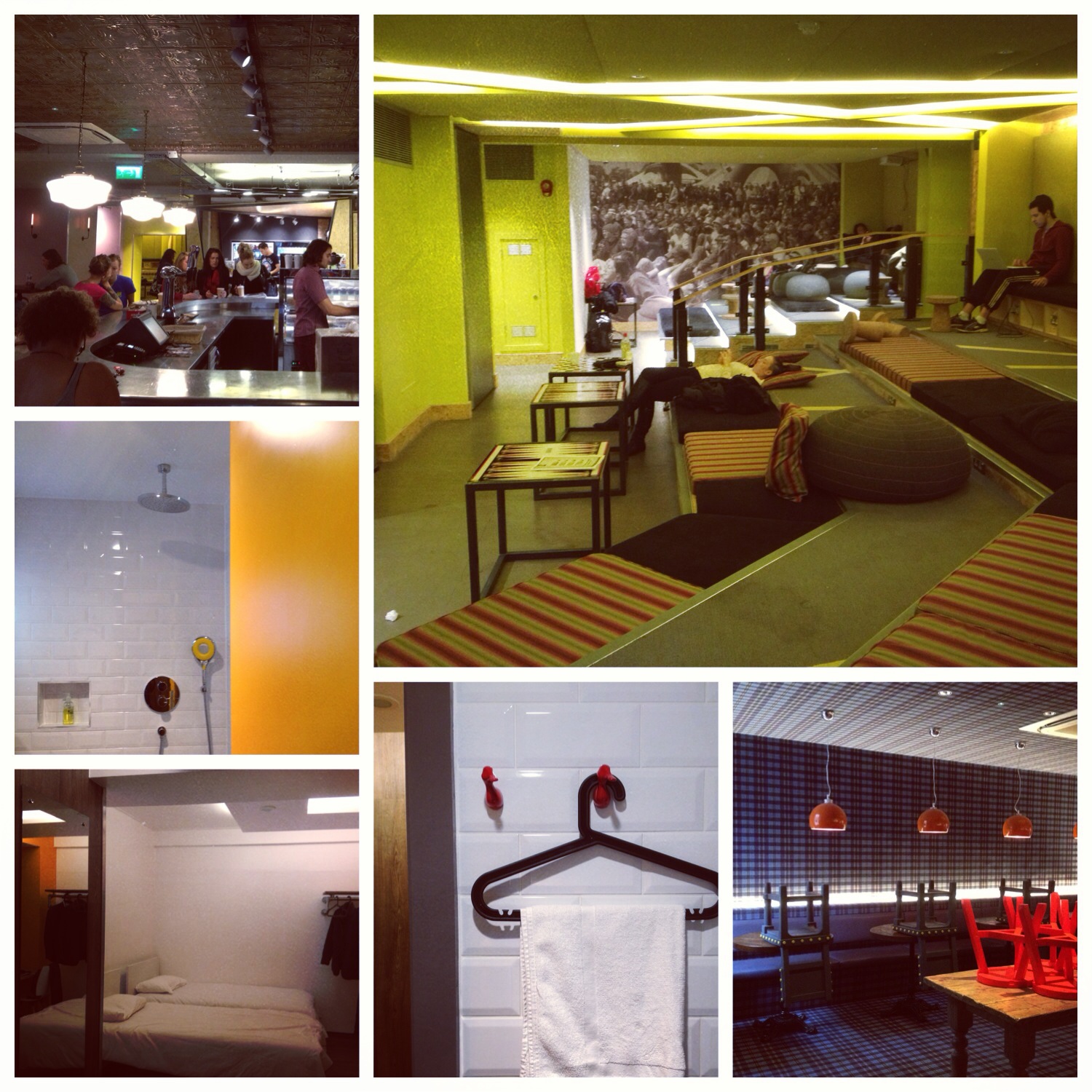 I arrived quite late on a Wednesday night, close to midnight and the place was still buzzing. Reception staff were friendly and checked me in super quick time. There was a problem with lights in my triple bed dorm room so I got quickly checked into one of their very slick twin private ensuites. The room was compact, cosy and very comfortable. There was a clothes hanging rail, full length mirror, comfy beds, linen and towels were supplied plus wifi signal in the room (4th floor) was excellent. It would have been nice to have plug point by the bed instead of in the opposite corner of the room. The ensuite bathroom was very stylish with a powerful Grohe Shower and came with complimentary Waitrose toiletries. It definitely feels more like a budget boutique hotel room.