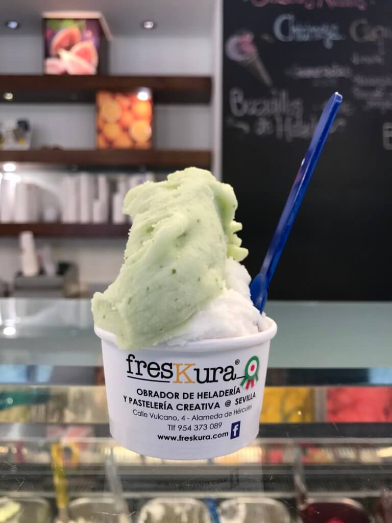 We finish off with some gelato. Freskura, near Alameda de Hercules could be in with a good shout for having the best ice cream in the city: try their lemon basil sorbet ( €2.50 ) ….or just a few hundred yards from the Mercado is Heladeria Artesana La Fiorentina, one of Seville’s best gelaterias where you find a range of exotic and exciting flavours, many of which are original and unique to Seville. Recommend trying the orange blossom or “crema de Sevilla” to get a real taste of Seville’s sweet side.