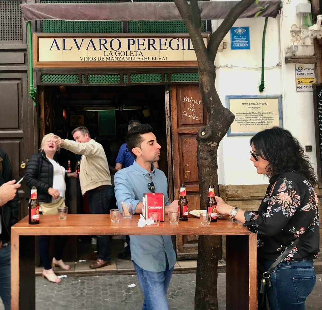 If you’re looking for an authentic, local bar then this is as good as it gets in Seville. The ice cold draft beer flows quickly here and at around €1.20 for a glass you will soon be spilling out onto the pavement with other locals and making new friends in no time. There’s also a wide range of sherries on offer plus the famous local orange wine. Drinks are served here with tasty olives and there are some special tapas dishes on the menu like Mojama , a Mediterranean delicacy salt-cured tuna, caviar and Bacalao Saladisimo – salted cod.