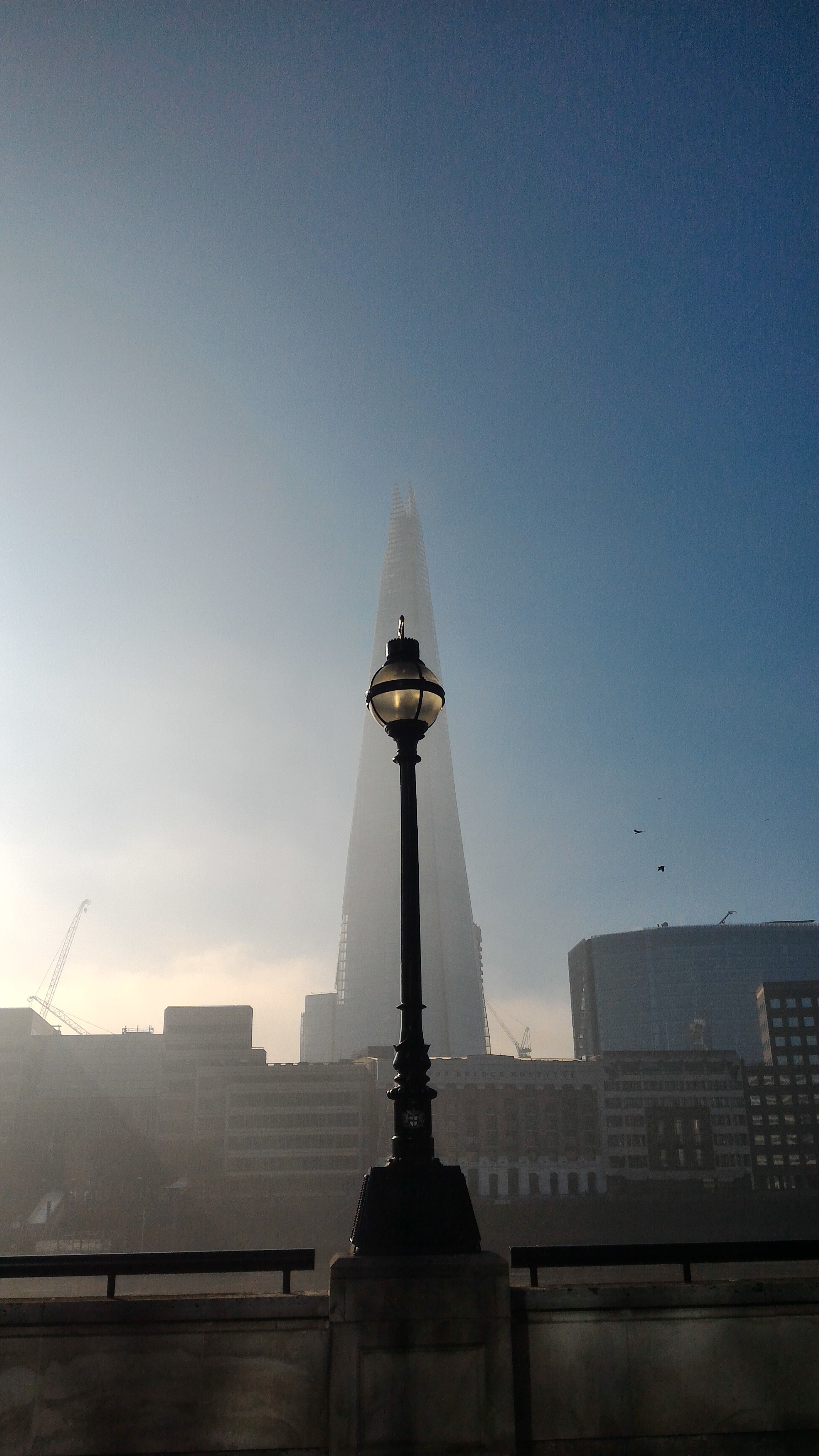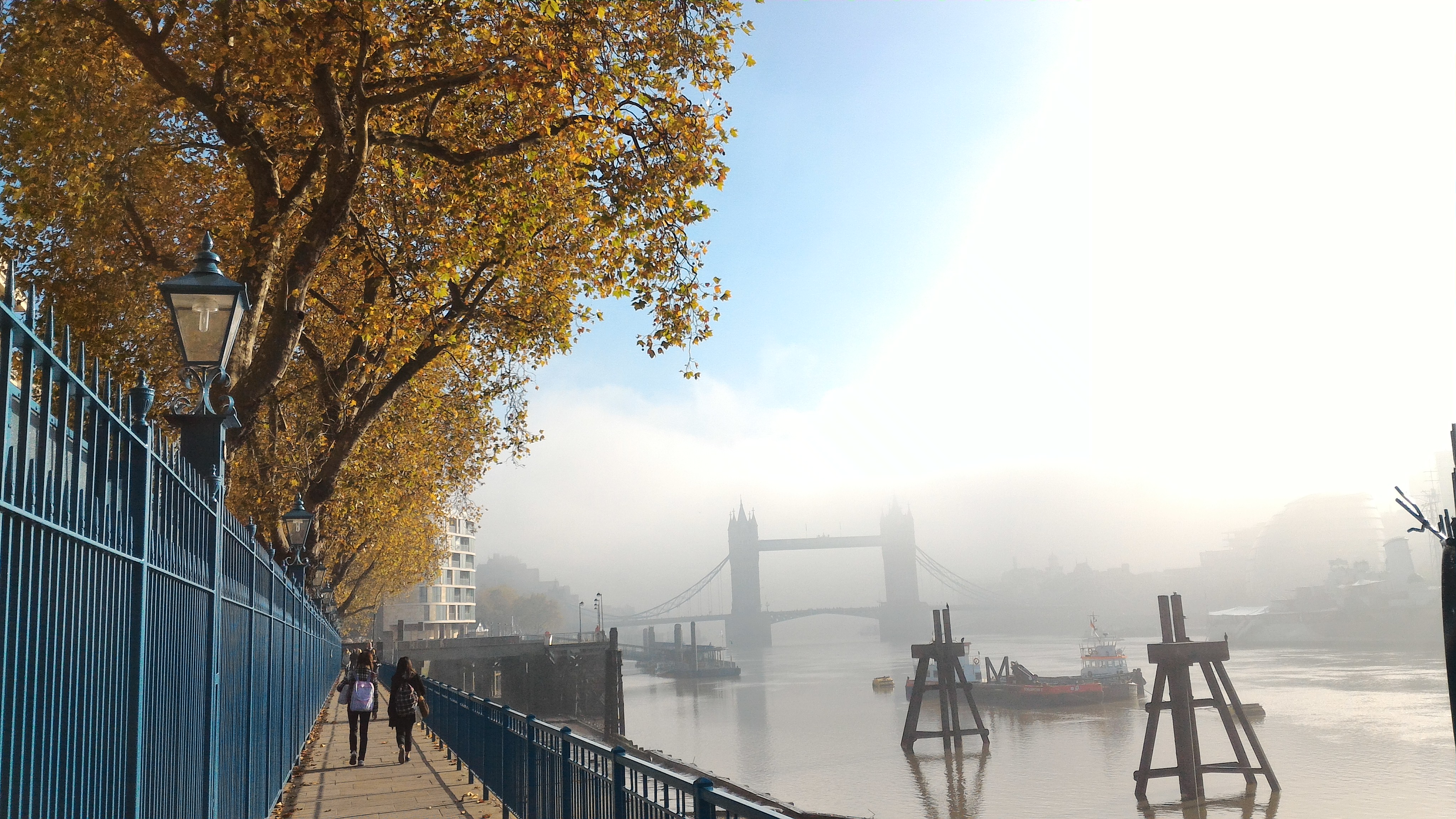 Beautiful blanket of autumn mist shrouding London Bridge.