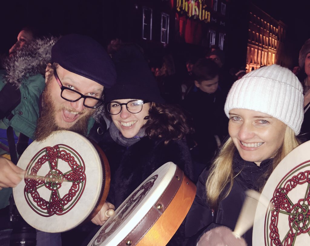 A big personal highlight of the evening followed soon after. Me, Sofia, Victoria and Steve were invited to become part of a Guinness World record attempt for the largest-ever assembly of bodhrán players. We honestly had no clue on how to play the bodhrán. After a last minute masterclass from Bodhran expert Robbie Walsh at our hotel, we mastered the intricacies of this fine instrument.
