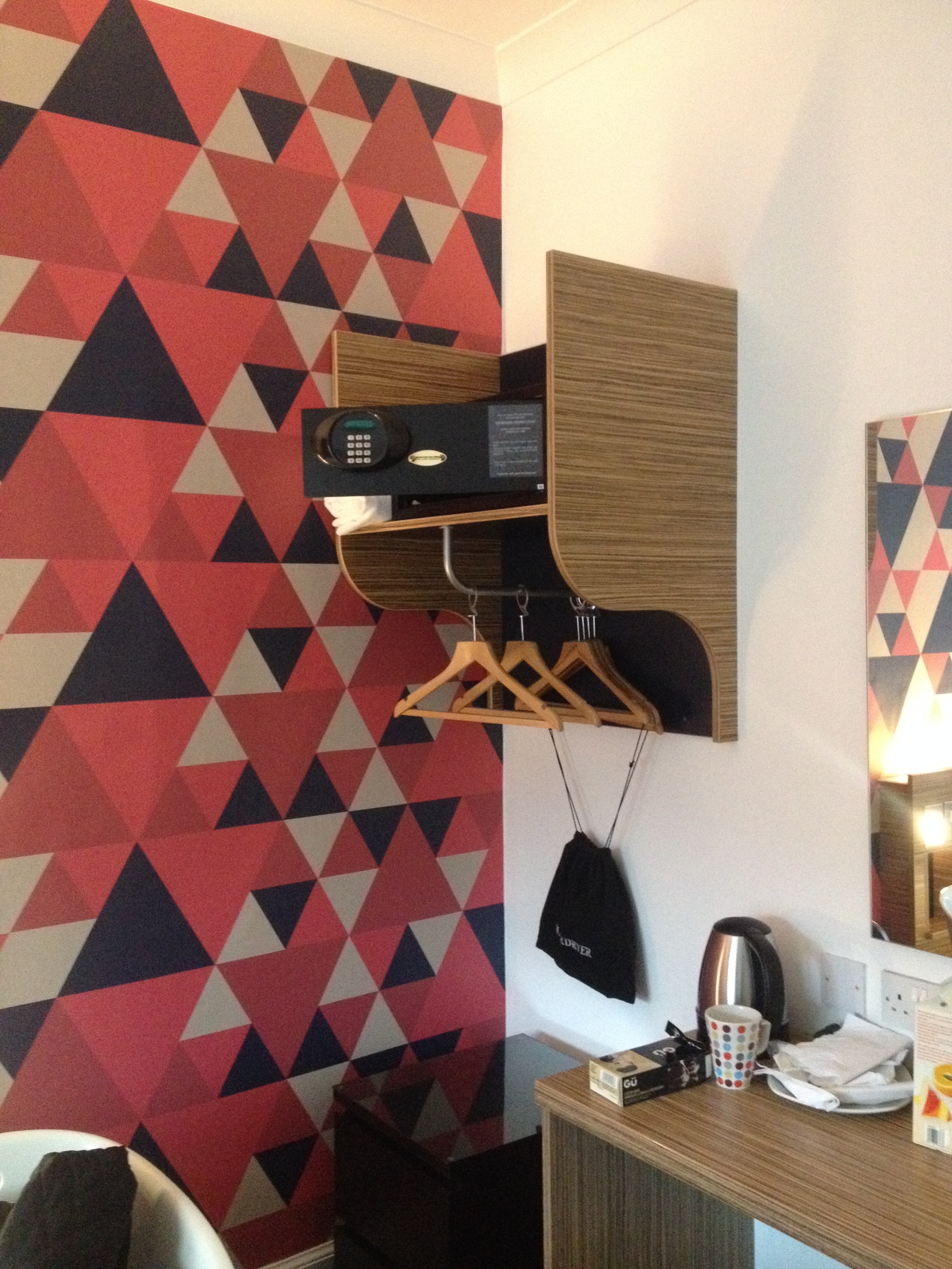 I stayed in one of their doubles- expect quirky psychedelic wallpaper, comfortable double bed ( nice mattress ) and a large ensuite bathroom. There is a TV with decent range of channels and tea/coffee making facilites.