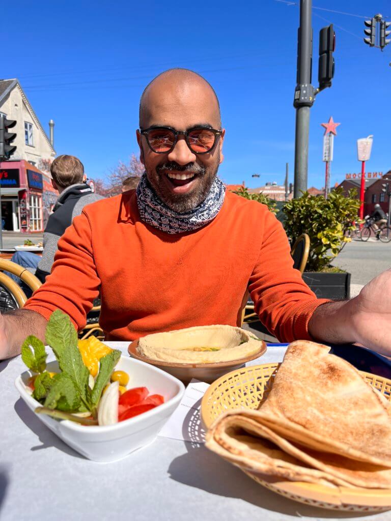Manakish starts from just 25 dkk. They also make really decent hummus here ( 45 dkk ) and foul, cooked fava beans with lemon juice, crushed garlic and cumin ( 45 dkk) Pair the dishes with their freshly squeezed apple juice ( 35 dkk )