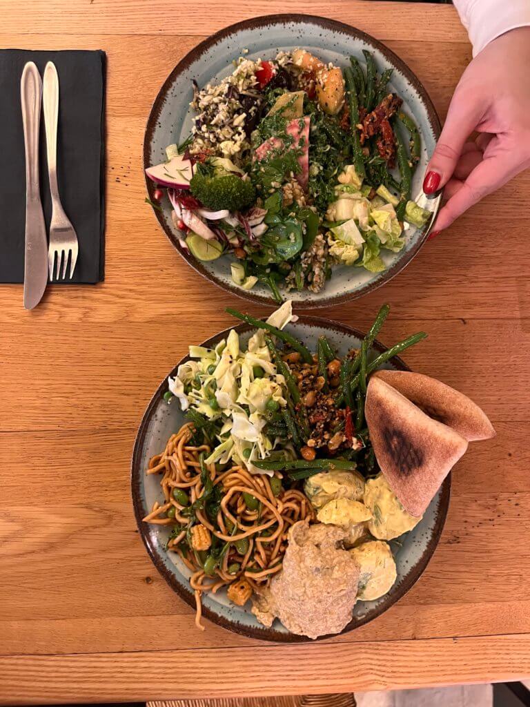 All you can eat daily special, served with different salads, hummus, and bread costs 85 dkk while the vegetarian lunch buffet starts from around 40-50 dkk.