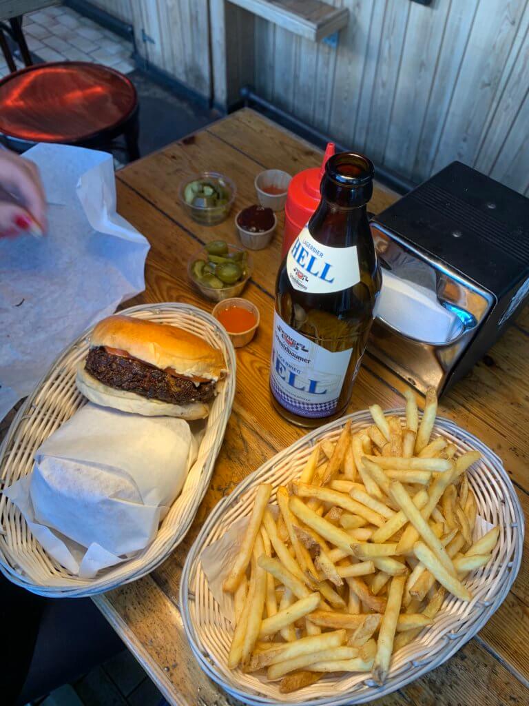 Veggie burger offer which includes fries and a soda is 99 dkk (€13) while their Hamburger offer is 119 dkk ( €16)
