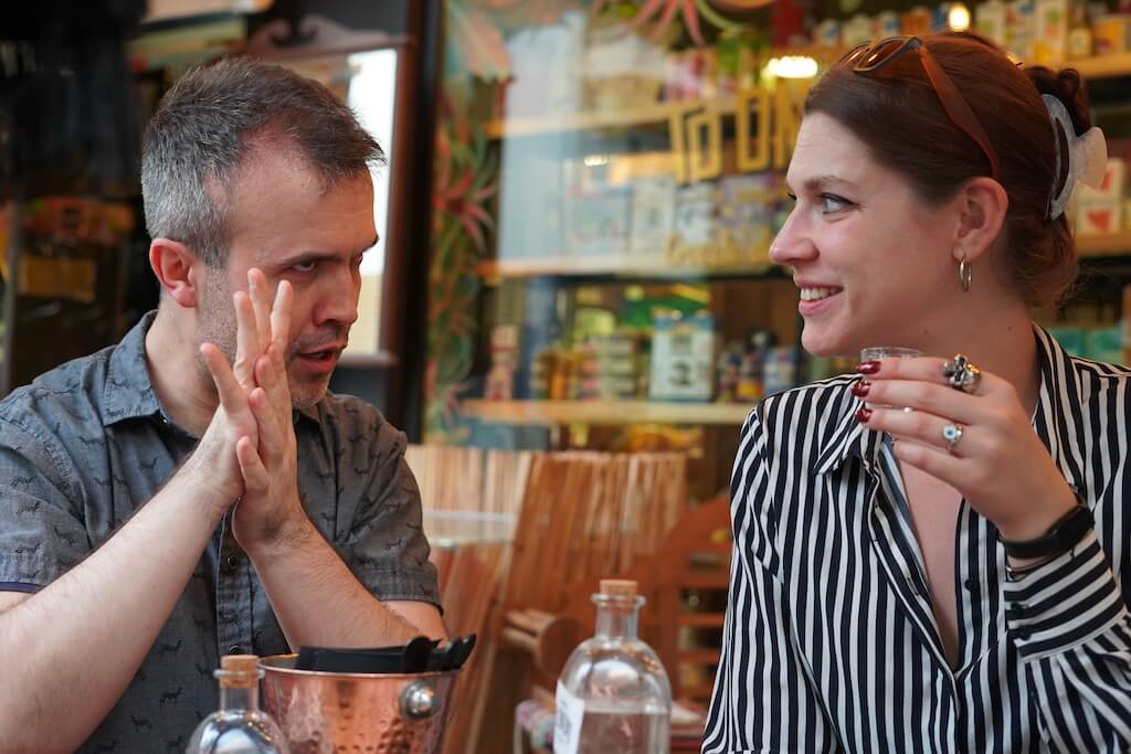 For our next stop, Theodore takes us to a popular local delicatessen with a twist : Pantopolion not only offers authentic Greek food specialities but serves visitors a wide variety of Greek beverages, from tsipouro, tsikoudia to wine accompanied by cold cuts of meat plus cheeses.