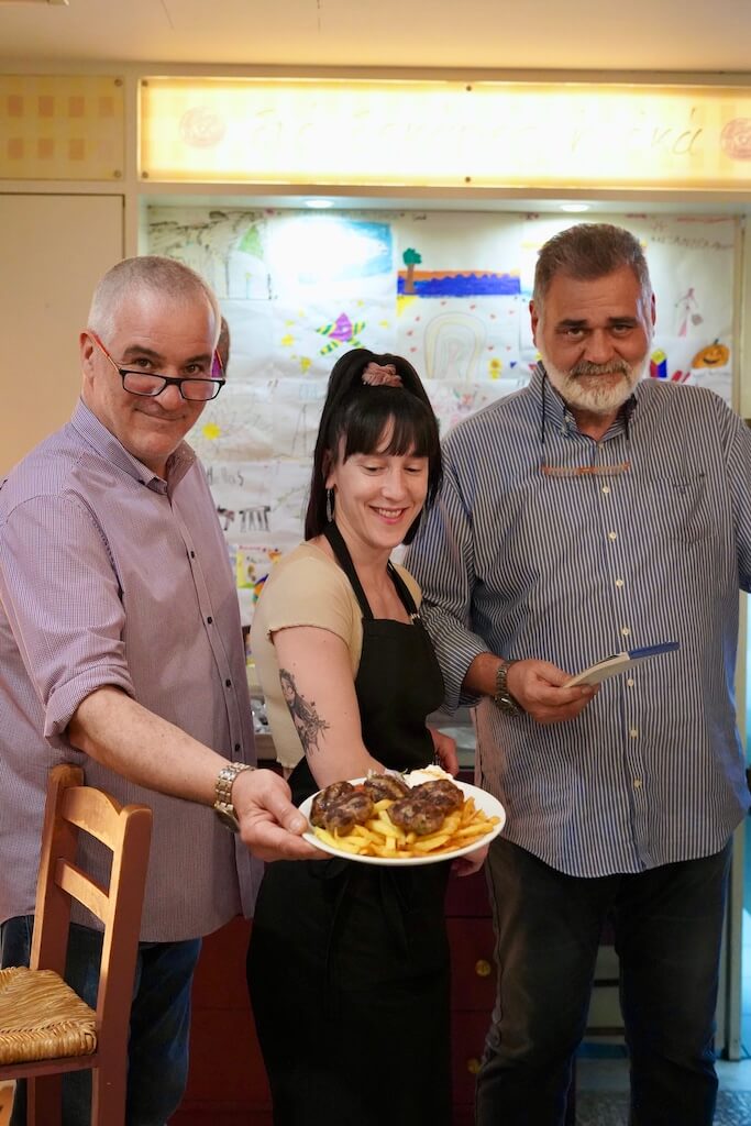 Our last stop was a sit-down dinner of home-cooked Greek classics at one of the coziest tavernas in Athens. If you want to visit a typical Athenian tavern, this is the place, with guitars and snapshots of Greek music on the walls. Run by three brothers, the tavern feels more like a gathering of friends and family and you are being welcomed into their home. The brothers have kept alive their family recipes and culinary traditions so this as Athenian as it gets. We are treated to a delicious homemade moussaka, eggplant roasted in the oven with feta, marinated chickpeas and tzatziki.