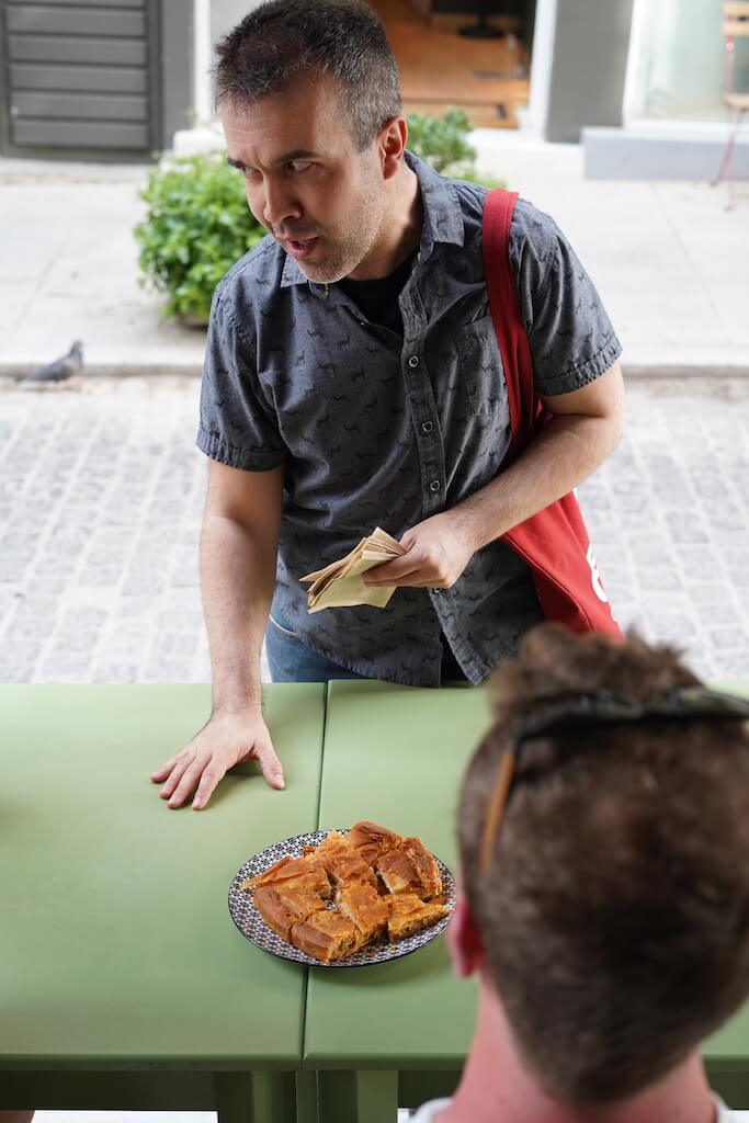 Our tour starts at one of the oldest bakeries in Koukaki, Pandora which is tucked away on a side street near the Acropolis. Their main claim to fame are their heavenly pies which are an essential part of the Greek and Athenian diet and something that can be enjoyed at all times- breakfast, lunch or dinner. The pies here are made with homemade phyllo pastry and prepared on the premises daily. There is a range of pies to try with interesting filling from pumpkin to cheese and pasta.