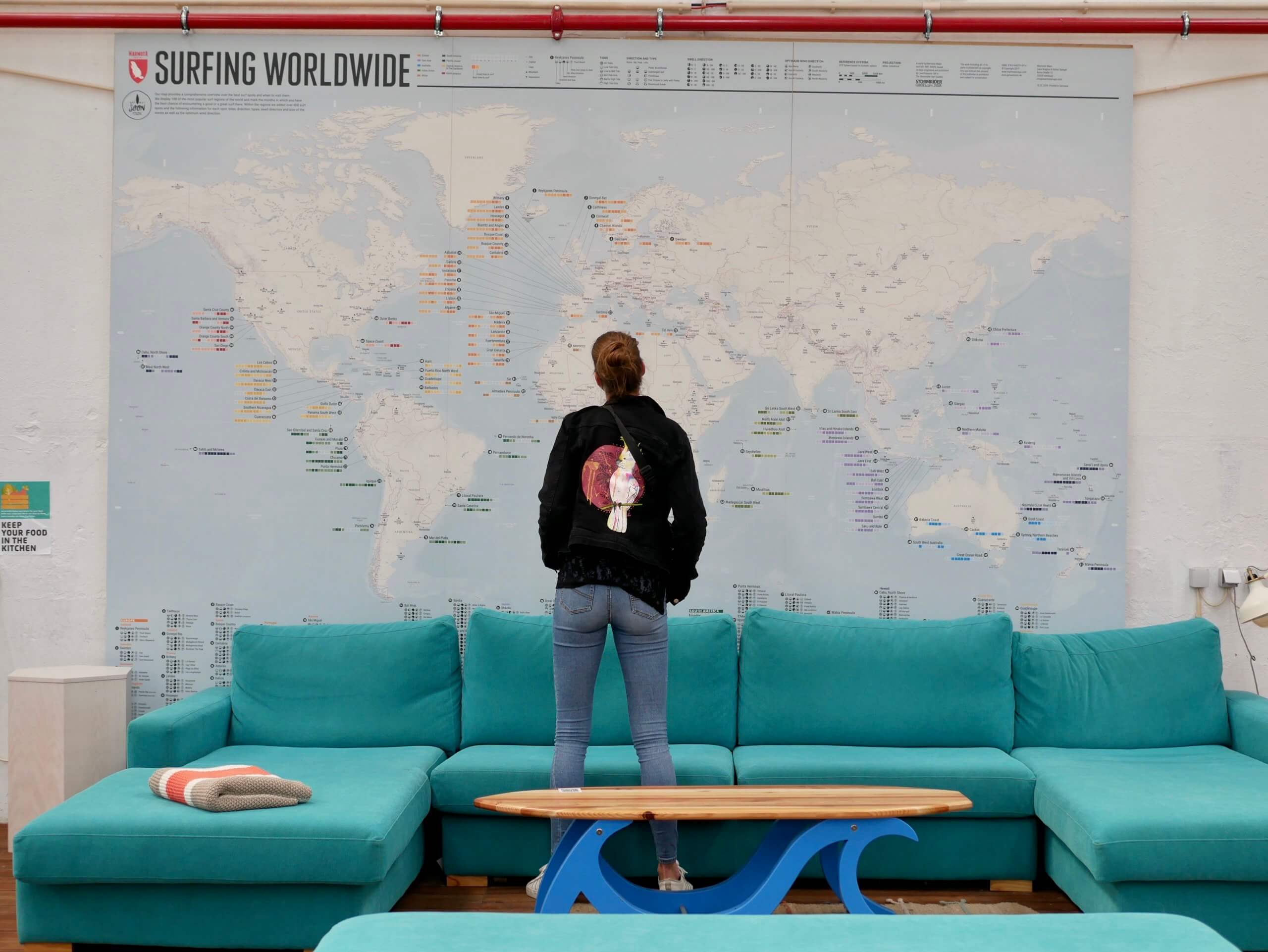 Tucked away , just around from the outdoor swimming pool is a dedicated ‘quiet’ coworking space to plug away from. If you are more happy to be surrounded by guests, the bright common kitchen area ( with lots of plug points ) breathtaking views of the sea in the distance via the floor to ceiling windows, is also a great space to work from. There’s a bar on premises if you need a cold beer after work plus the spacious common kitchen lends to guests socialising and meeting in the evening so it is the perfect hostel if you are on solo nomadcation. There’s also an extensive range of activities, from yoga classes to surf lessons to keep you busy in your downtime.