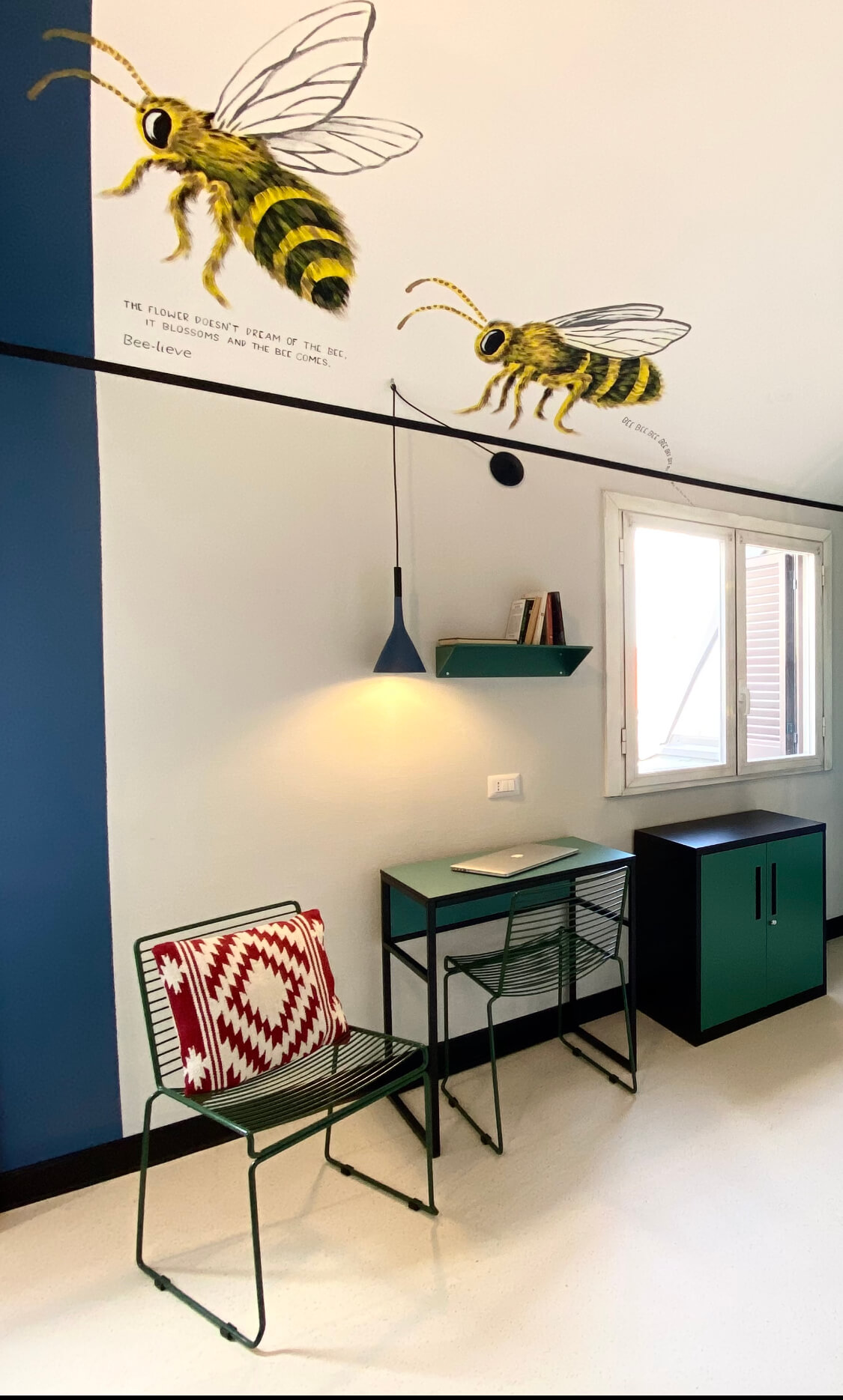 They have wi-fi, desks in the rooms, and there is a wide variety of common area spaces to work from, ranging from the kitchen, lounge to their courtyard garden area. The Beehive also is a community space where from time to time where they hold low-key events to which both locals and guests are always welcomed. Events range from knitting circles to book readings to wine tastings, aperitivo evenings, art exhibits, and much more