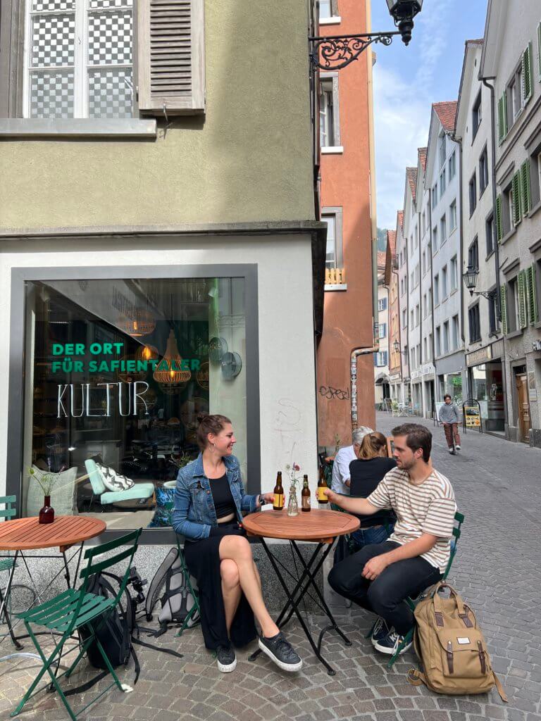 The facilities are brilliant and perfect for nomads- dedicated coworking space at no extra charge, a really nice guest kitchen which guests can use to cook from ( handy given how expensive eating out is in Switzerland) plus a common room with a library, board games and also a TV for watching movies. For a small fee, the hostel also helps with your laundry which is very handy. The hostel reception has a drinks kiosk with local drinks and a beer on tap if you are feeling thirsty. There is also a small shop with local products, food essentials, everyday body products in case you run out during your stay. Hostel organises dinners and also has plans for hostel happy hour to bring guests together in the lobby. The hostel also has a really cool bar and restaurant called Kostbar which is nice to have a beer and relax, especially in the summer months when the terrace is open. The Sennhof, the original complex where the hostel is located is also home to local designers, a beautiful flower shop and also an art gallery so you really feel a sense of community and being part of the everyday life of the town.