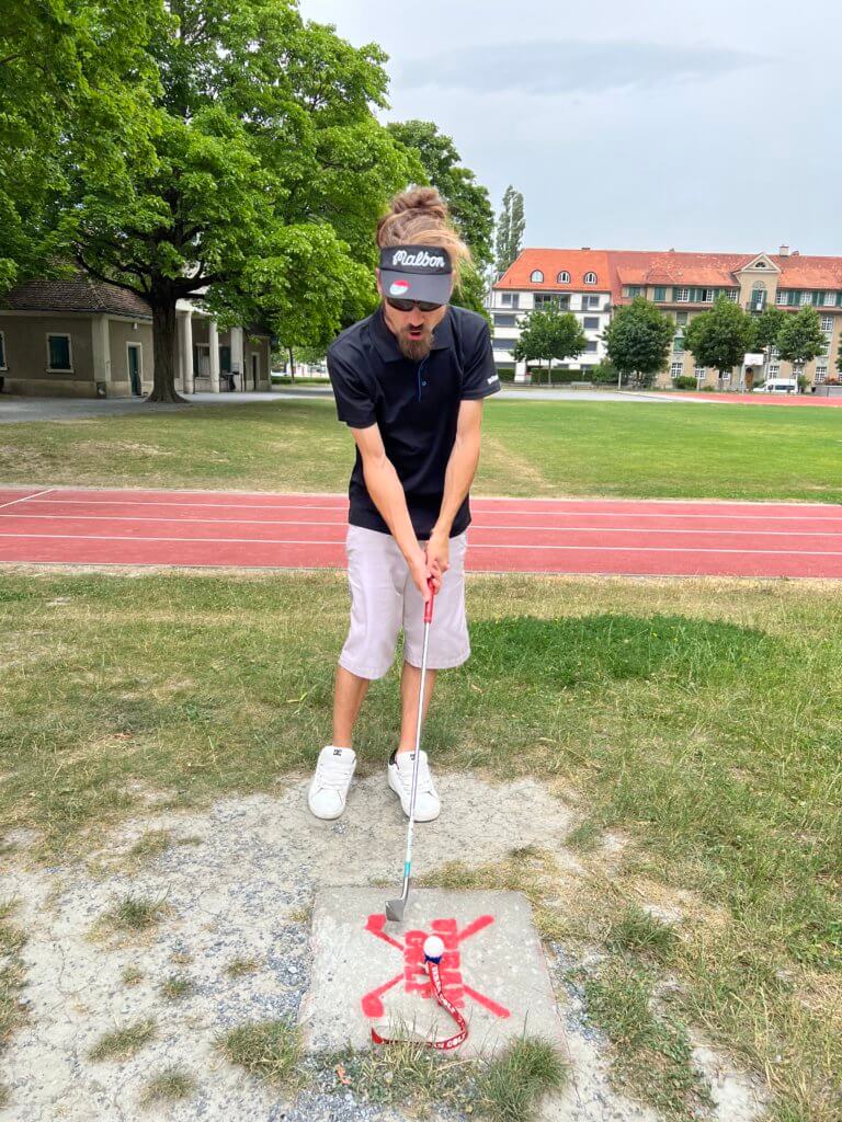 Essentials: To play the full 9 holes across Chur with friends or family costs 15 CHF. It takes around 2.5 – 3 hours to complete all the 9 holes. A deposit fee of CHF 10.00 per person is required , in cash when you pick up the equipment at the ‘Tourist Information’ ( Bahnhofstrasse 32, 7001 Chur ) . The equipment includes 1 golf club, 1 soft ball, 1 “bäseli” and 1 lanyard. The deposit will be returned when the equipment is returned.