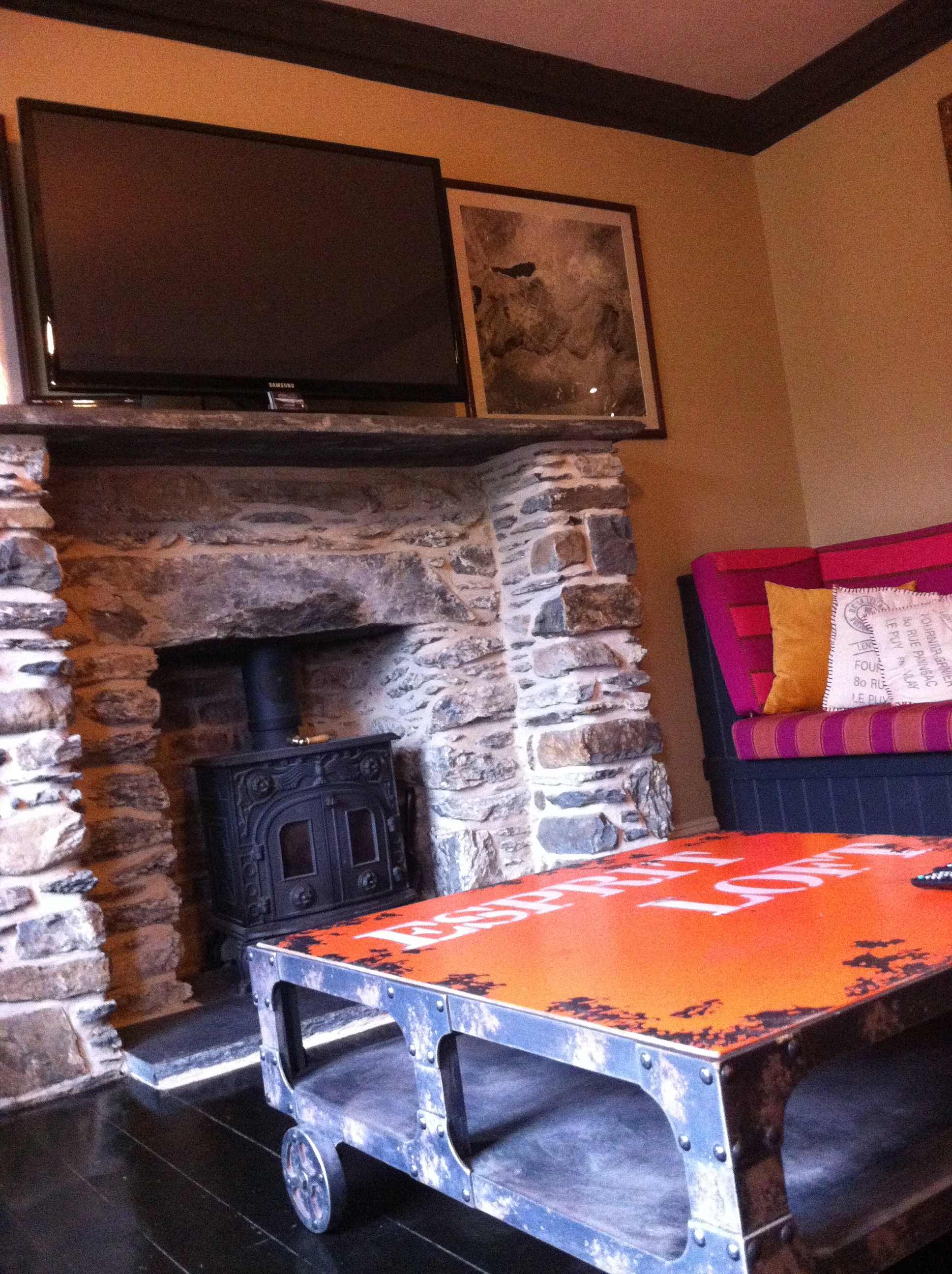 Interior décor here is breathtaking. Even on the rainiest of days ( there are many here), soft lighting , warm colours and multitude of colour coordinated cushions give the place a cosy, cheerful ambience. Elegant worn spiral staircase leads you to the rooms. It’s hard to think of dorms and luxury in the same breath but you have to come and stay in Plas Curig to see for your own eyes: built in wooden bunk beds come (great for tall people) with private fitted curtains, plus point and reading light. Beds are made up before arrival-nice personal touch. Welsh woolen blankets and fluffy duvets that you just sink under after a long day of hiking around the countryside, crisp sheets and excellent quality mattresses make sure you have a sound sleep. Bunk beds come with storage drawers. Rooms are not ensuite but the communal black & white bathrooms are plentiful on each floor and have nice, hot showers.