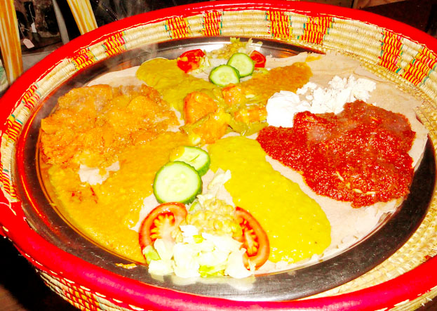 It may seem a little strange that the first time I try Ethiopian food it’s in the Netherlands, but that’s actually how I like doing things so it was with great pleasure that I found out that Abyssinia was as affordable as it was tasty and filling. Served on a huge spongy pancake type bread and with another on the side, the main dishes, which start at around 12 Euros will fill you up until the following lunchtime, if you can eat it all of course. Best of all you’re not only allowed to eat with your hands, it’s expected and trust me when I say that it tastes even better washed down with the Ethiopian beer.