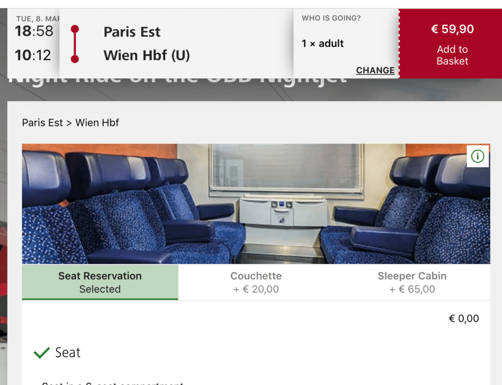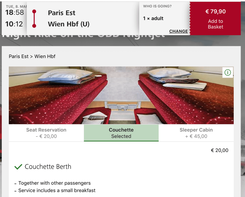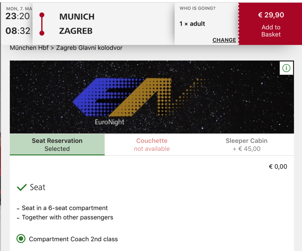Other great services on Nightjet train worth keeping an eye include the Munich to Zagreb service ( leaves Munich at 23.20pm and reaches Zagreb at 8.32am) -booking in advance, you get a seat in the compartment for as little as €29.90 or for an extra €45 on top, you can get a sleeper bed.
