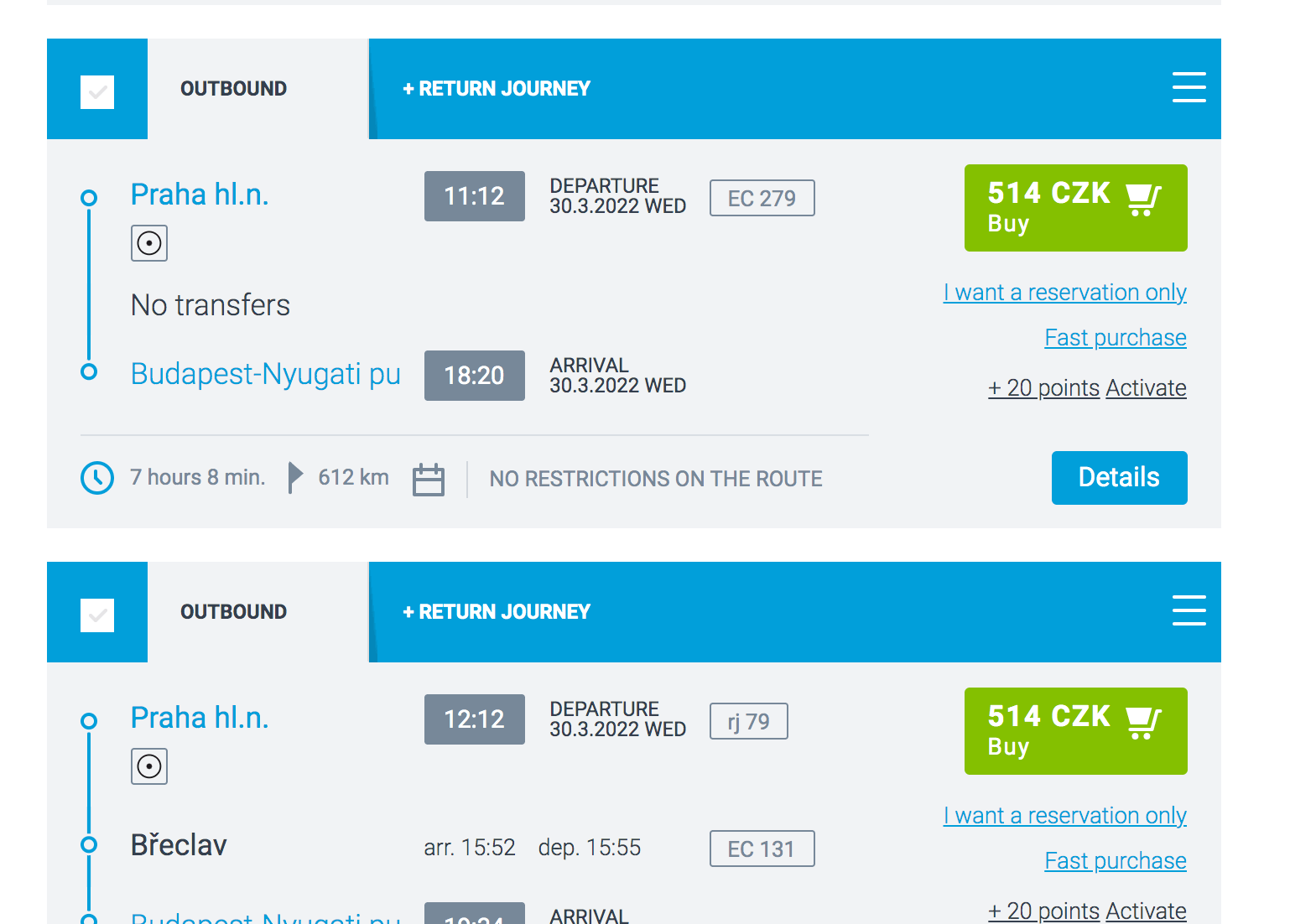 Another slightly more expensive and alternative option is to book Eurocity train from Prague to Budapest for as little as €21 or 514 CZK. You can only book this ticket in advance only via the
