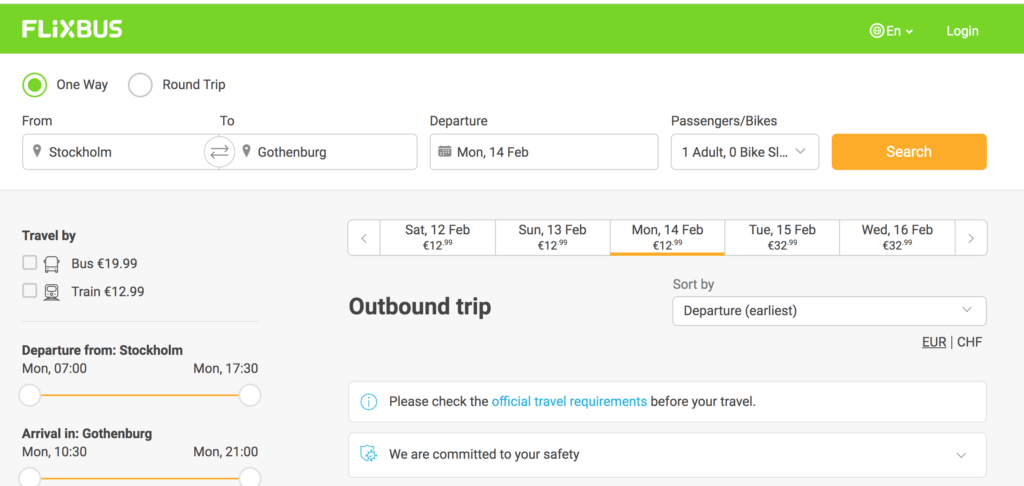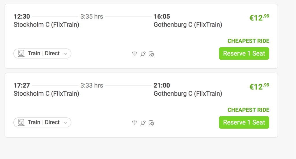 If Sweden is on your itinerary and you are planning to travel between the two main cities, Stockholm and Gothenburg, have a look at Flixtrain who offer fares for as little as €12.99/135 kronor between Stockholm and Gothenburg. To give you a comparison, main operator in Sweden SJ offer fares of 194 kronor/ €18.60 so you make a big saving.