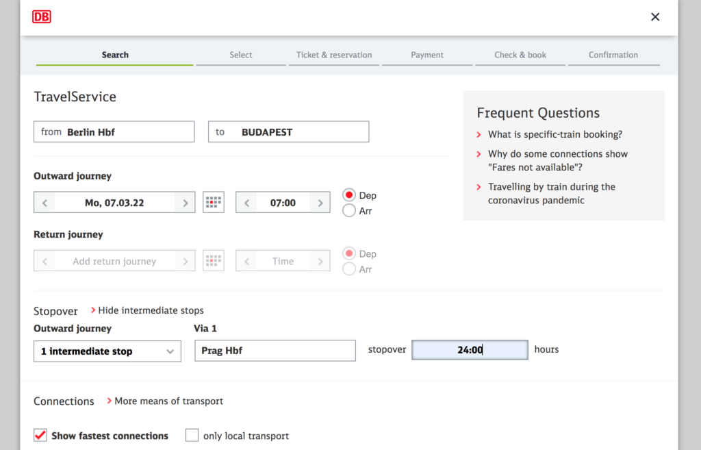 For example, searching in March 2022, you can buy a ticket from Berlin to Prague for as little as €18.90 with a 24 hour stopover in Dresden.