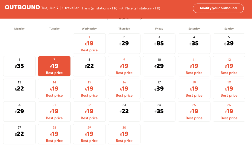 If you are planning to travel to Paris and Nice, Ouigo also operate a low-cost service on this popular route. In June 2022, I can see fares for as little as €19. Trains leave from the more central Gare de Lyon to Nice.