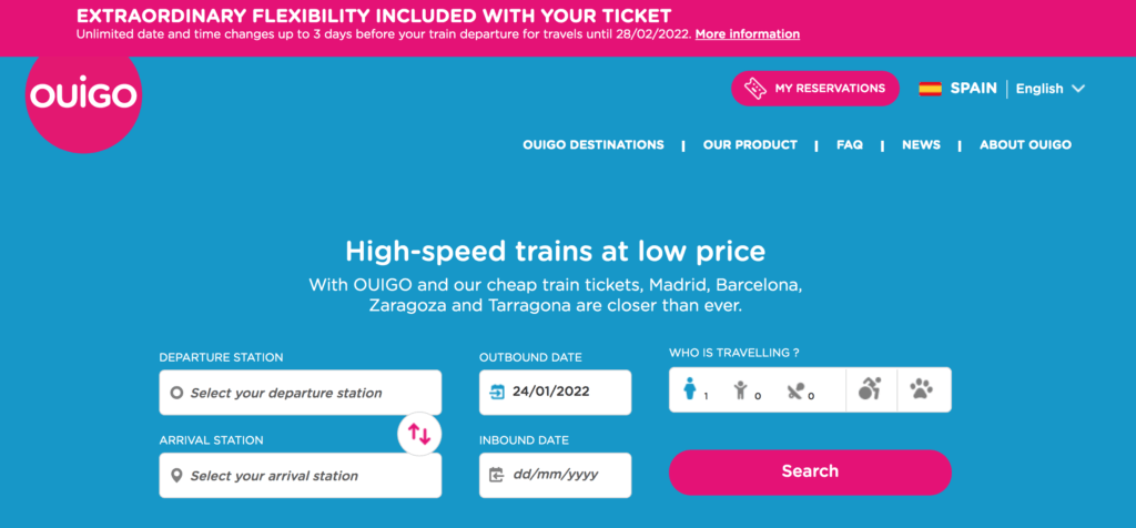 Last summer ( 2021) Ouigo brought their unique low-cost train services to Spain. From May 2021, Ouigo started offering a 5 times a day, daily return service between Barcelona and Madrid. The service also serves the cities of Zaragoza and Tarragona.