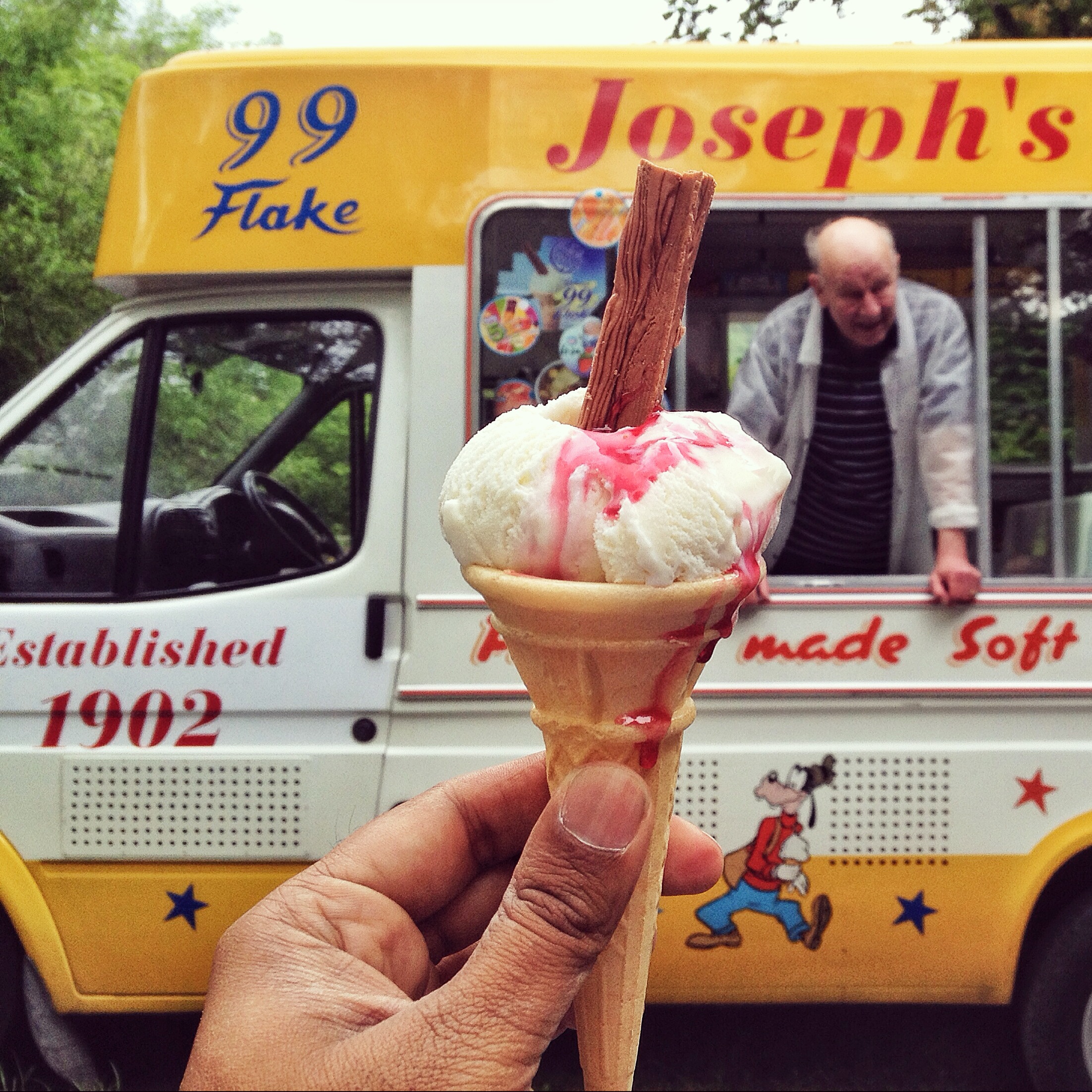 The taste of an English summer is surely the 99 – soft ice cream in a cone with a Cadbury’s Flake. It tasted great, especially with a dribble of raspberry syrup.