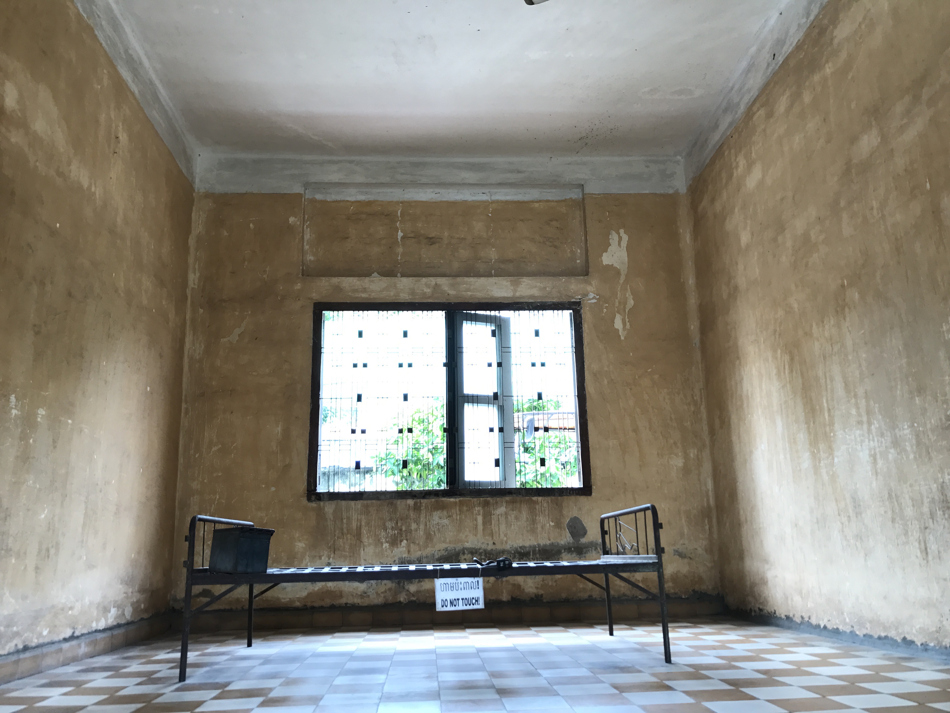 S-21 was a torture and interrogation center based in a converted school building in the outskirts of Phnom Penh. Formerly a school, the classrooms were turned into prison cells. Prisoners were shacked to iron bars 24/7 living in unhygienic and squalid conditions.