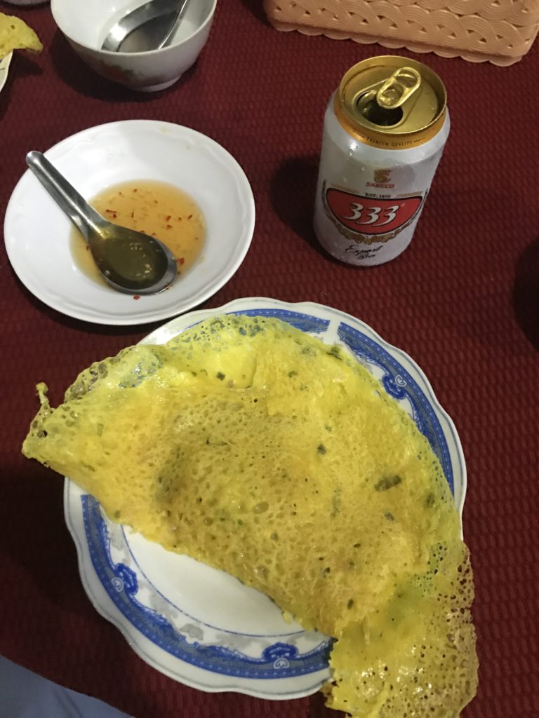 Highlight of the stay was another memorable meal. We were treated to a live demo by our homestay hosts of making traditional Vietnamese pancakes called banh xeo that are typical of the Mekong Delta. The pancakes come with a filling of pork and bean sprouts which I then dressed with fish sauce for extra flavour. The food just kept coming after that. We had a buffet spread of various local dishes: pumpkin soup, spring rolls, fried pork simmered in a caramel sauce, sautéed green beans and tofu with tomatoes. A very simple but so delicious meal.